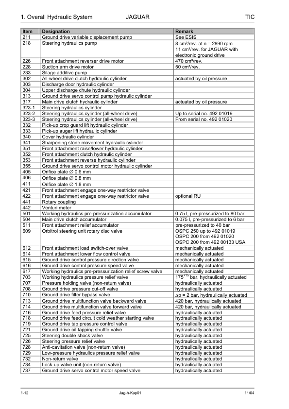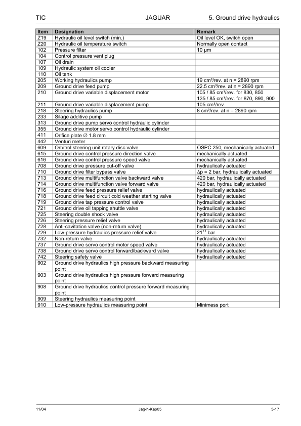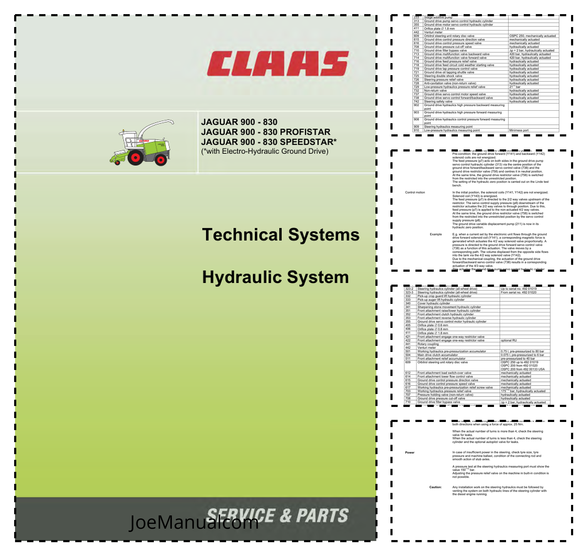 Claas Jaguar 900 830 Speedstar Forage Harvester Electro Hydraulic Ground Drive Hydraulic System Technical Manual
