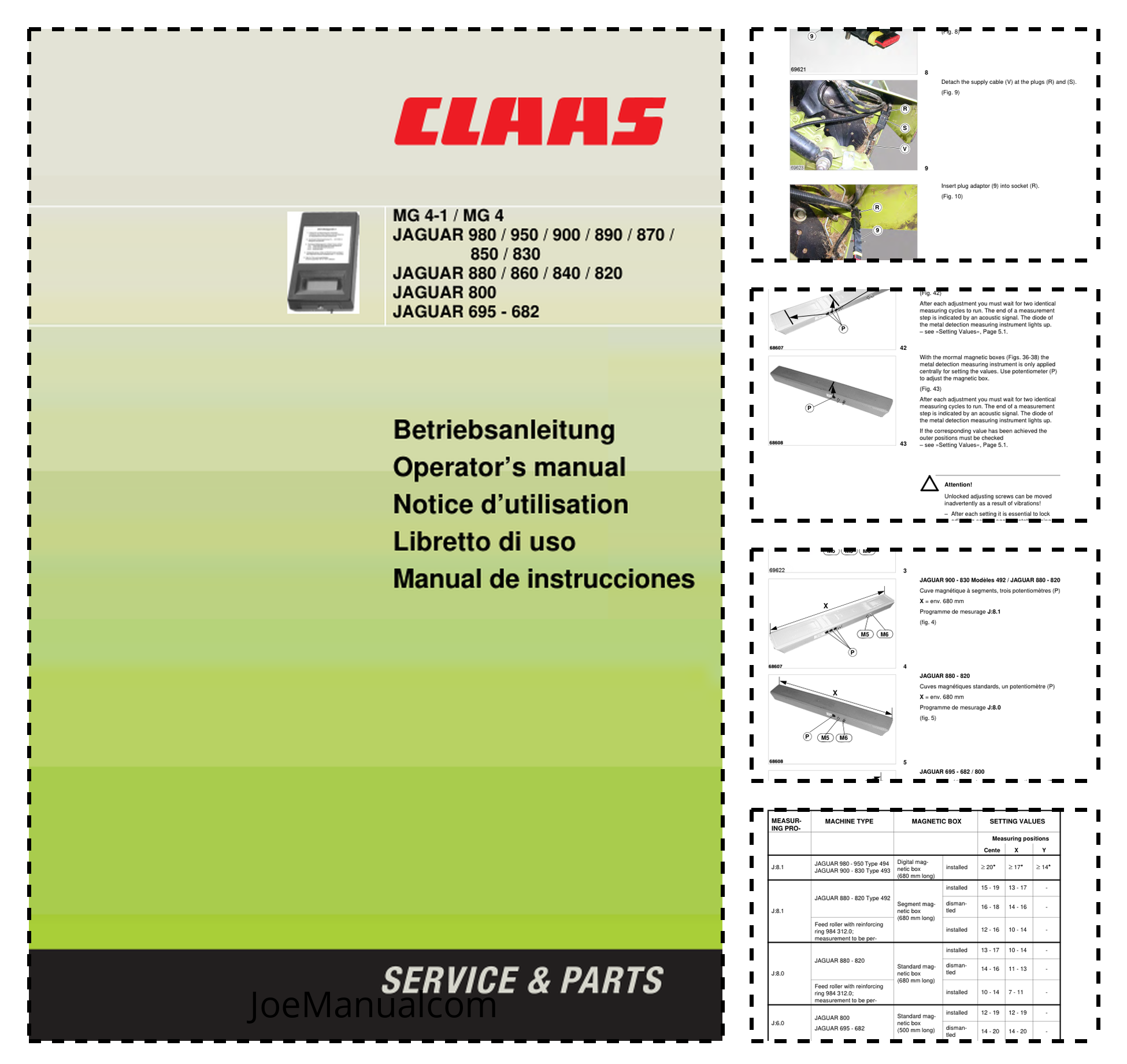 Claas Jaguar 980 830 Forage Harvester MG4-1 MG4 Metal Detector Tester Operators Manual