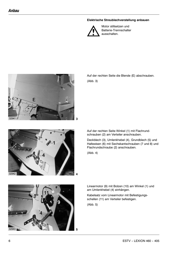 Claas Lexion 405 460 Combine Electric Deflector Adjustment Installation Instructions