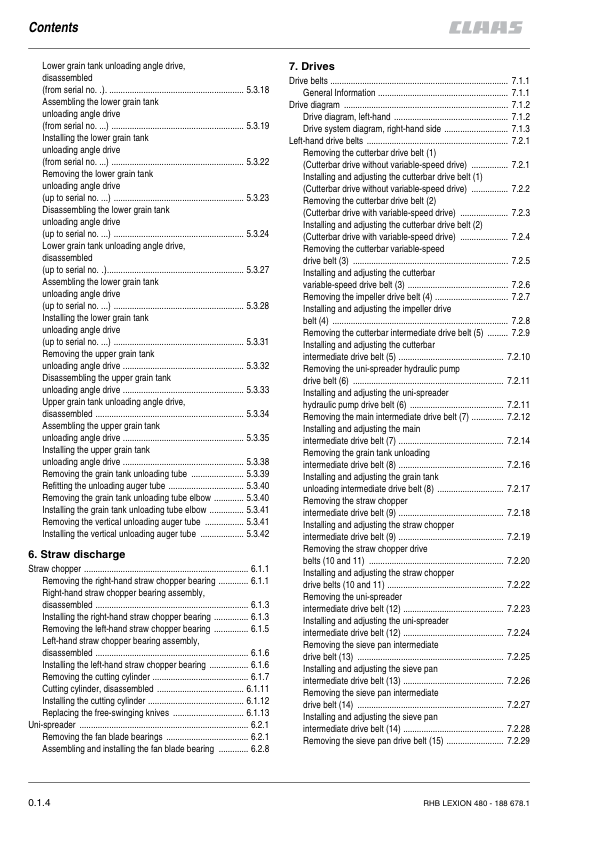 Claas Lexion 480 Combine Harvester Repair Manual