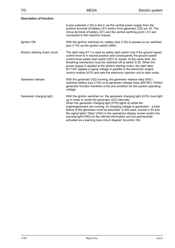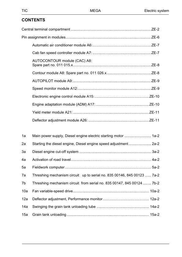 Claas Mega 360 350 Technical Systems Electric System Service Manual
