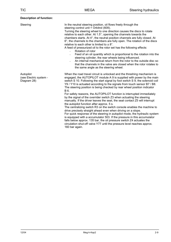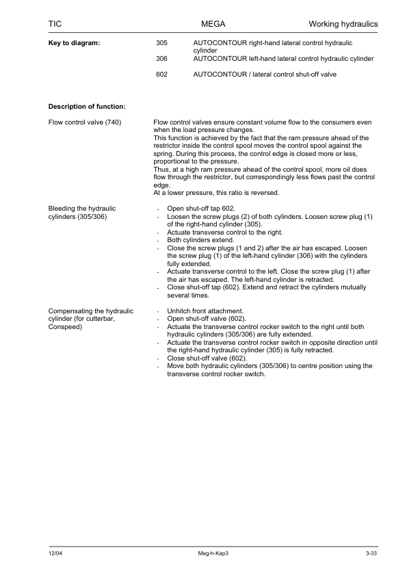 Claas Mega 360 350 Technical Systems Hydraulic System Service Manual