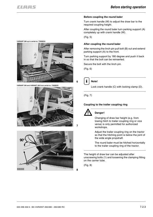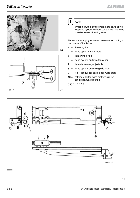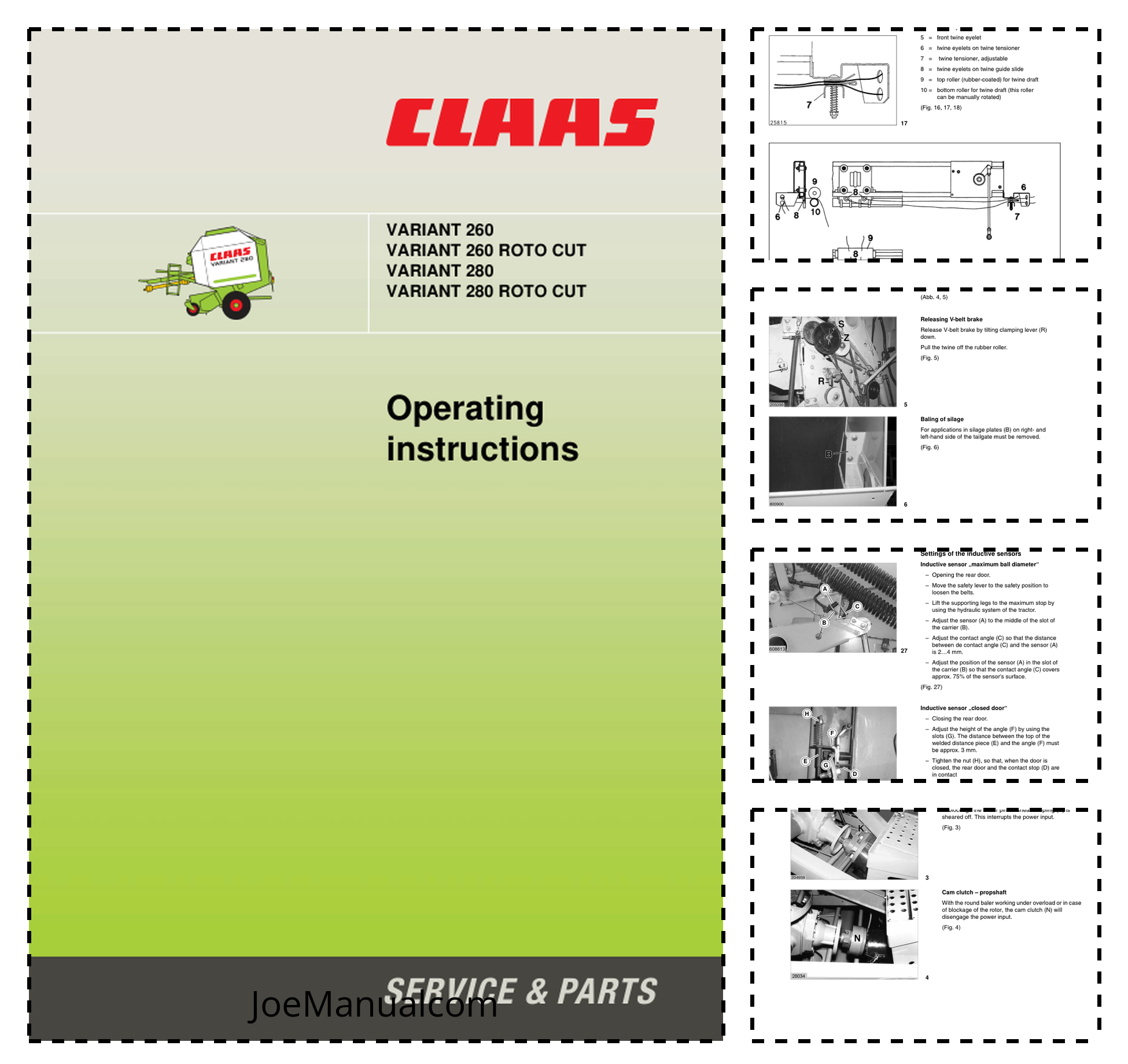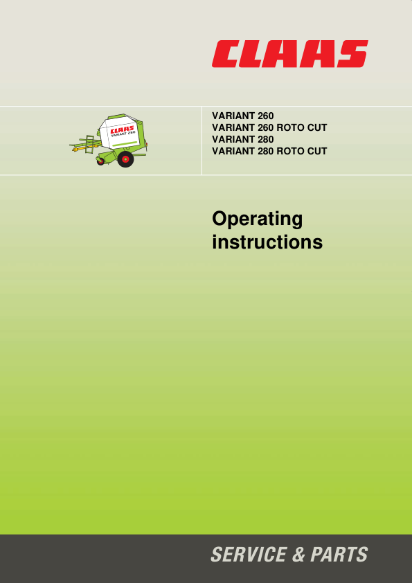 Claas Variant 260 260RC 280 280RC Round Baler Operators Manual