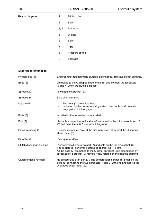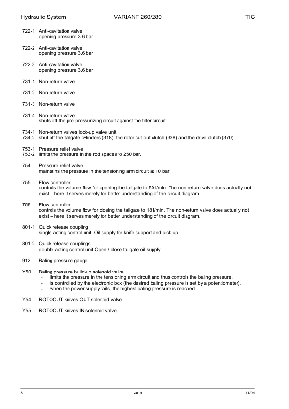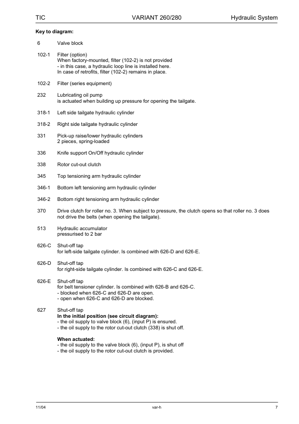 Claas Variant 260 280 Technical Systems Hydraulic System Service Manual