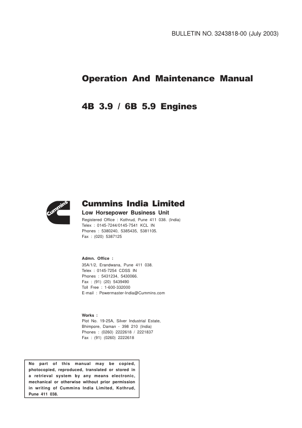 Cummins 4B3.9 6B5.9 Engines Operation and Maintenance Manual 9806/4050