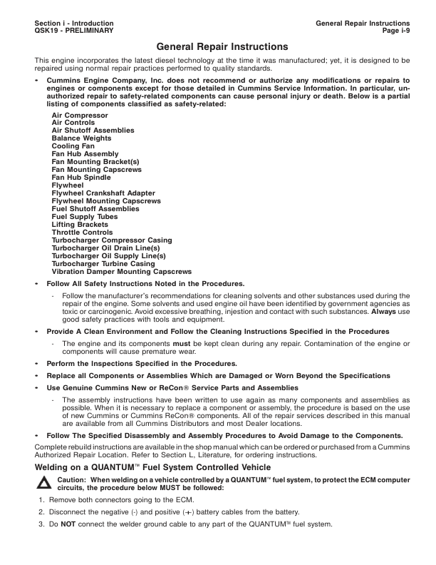 Cummins K19 Series Engine Quantum System Troubleshooting and Repair Manual