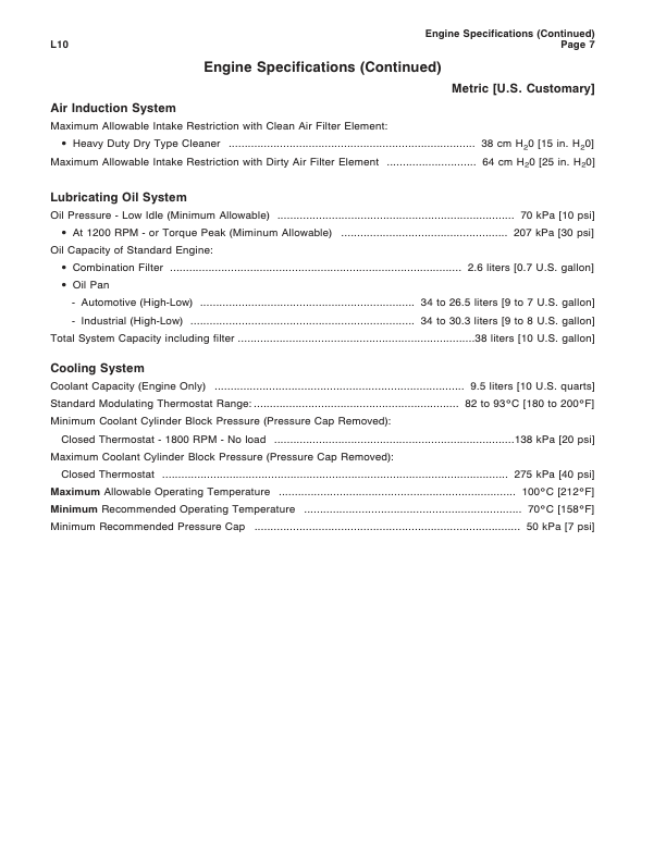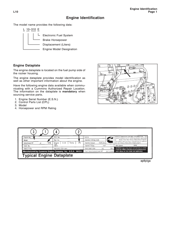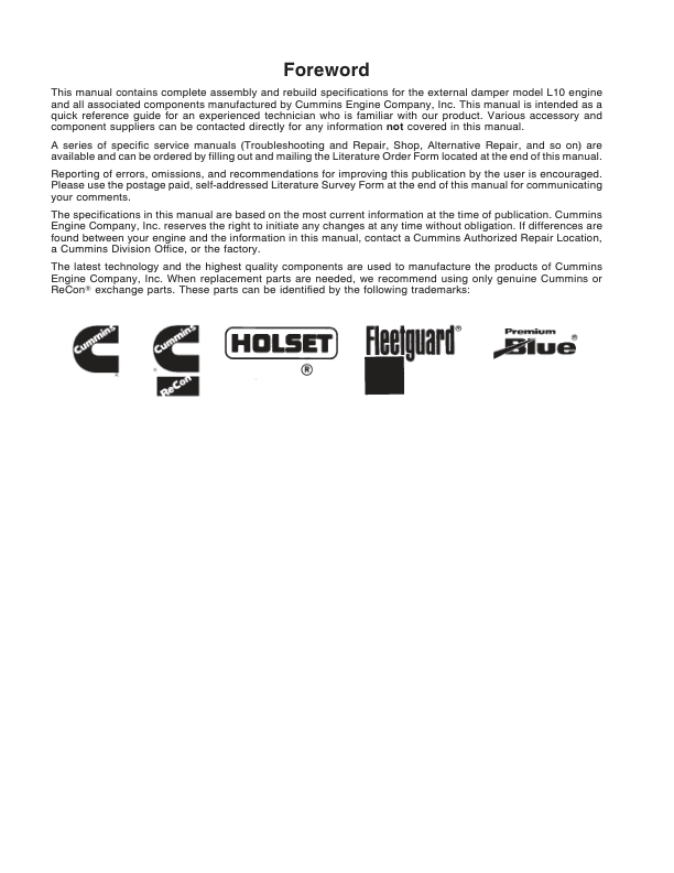 Cummins L10 Engine Series Specification Manual
