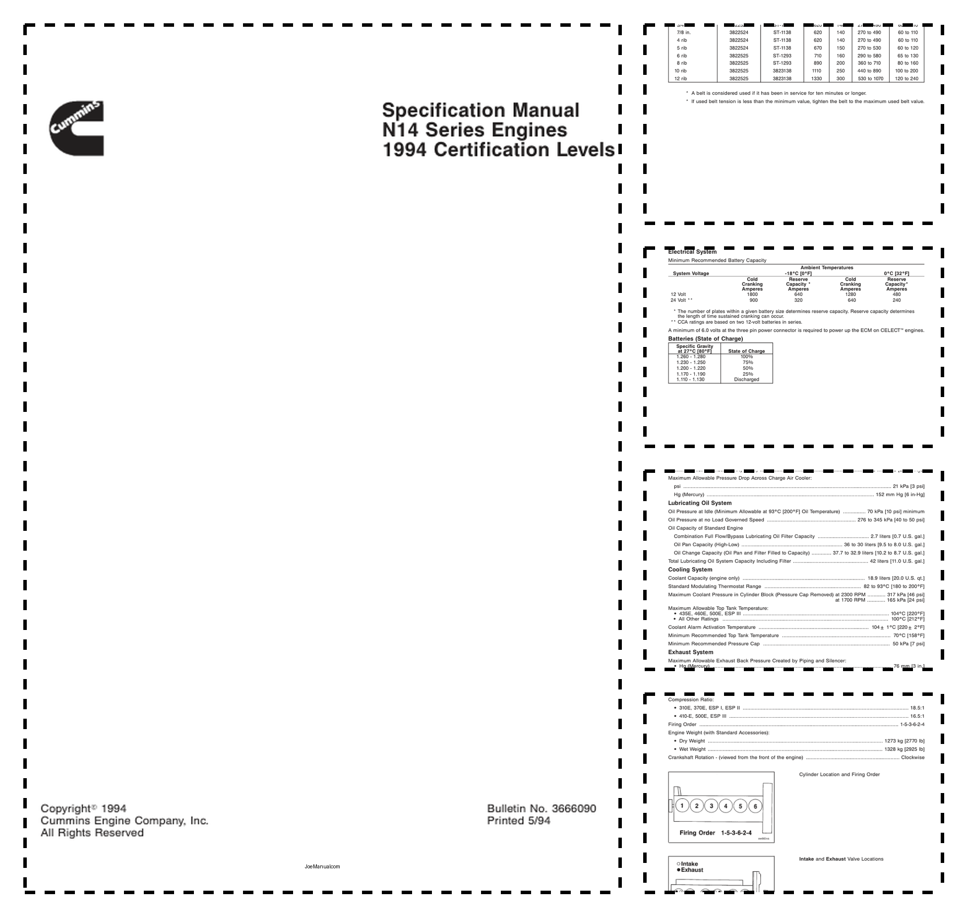 Cummins N14 Series Engine Specification Manual 1994 Certification Lvl