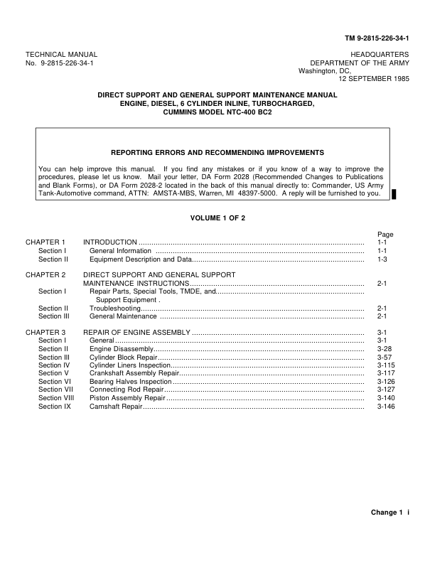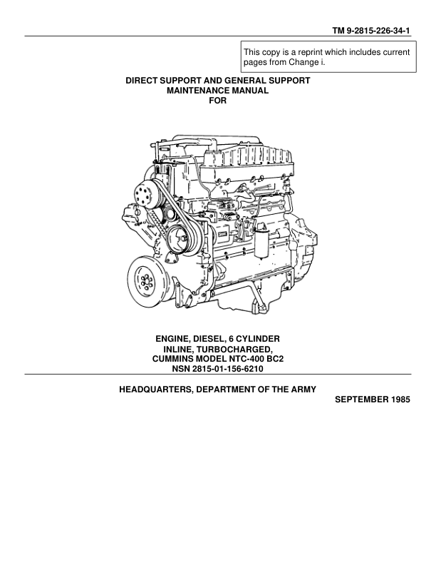 Cummins NTC-400 BC2 Engine Maintenance Manual