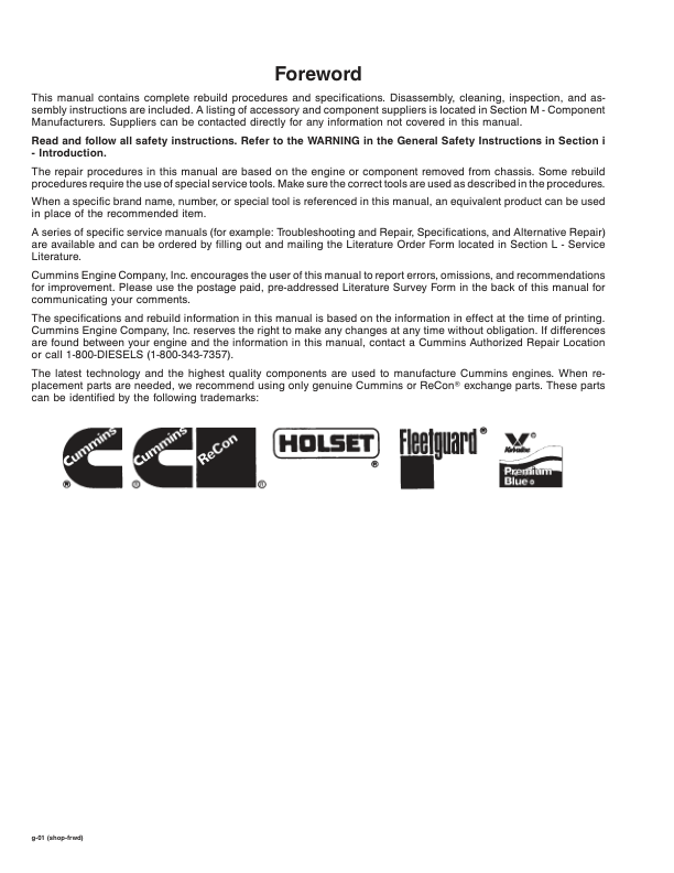 Cummins QSK19 Series Engine Workshop Manual