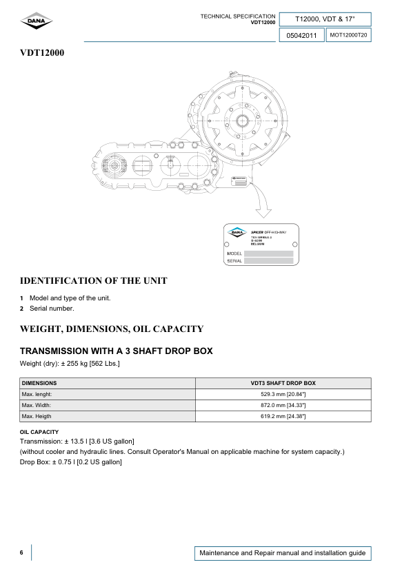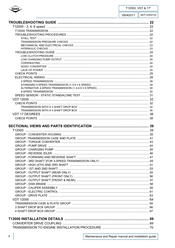 Dana Spicer VDT12000 T12000 Transmission Maintenance and Repair Manual