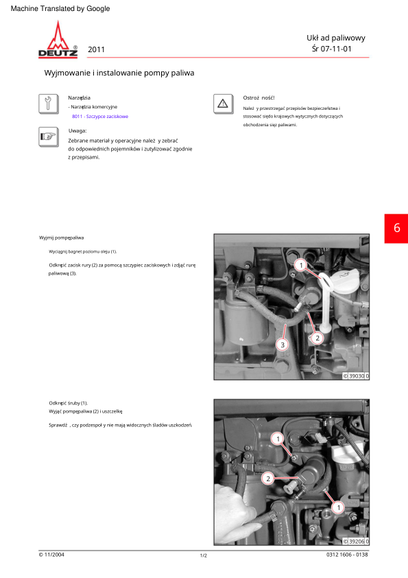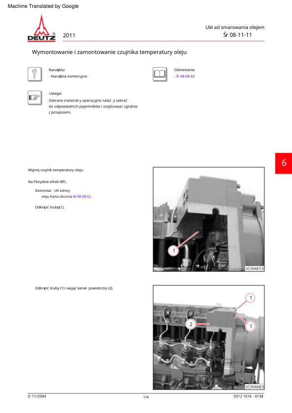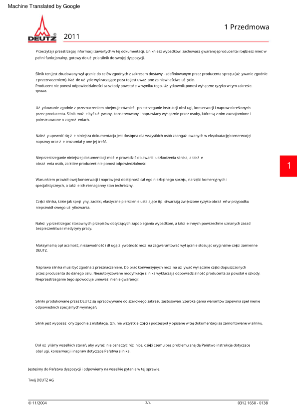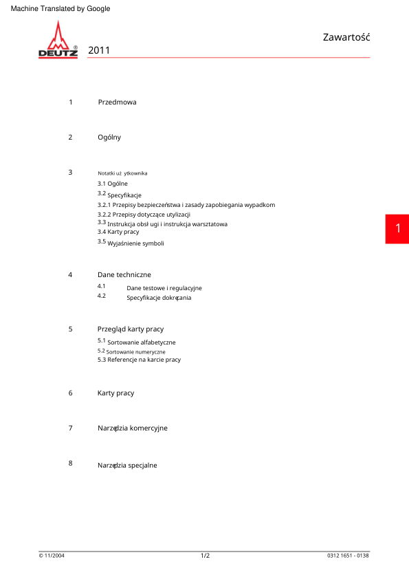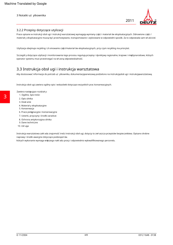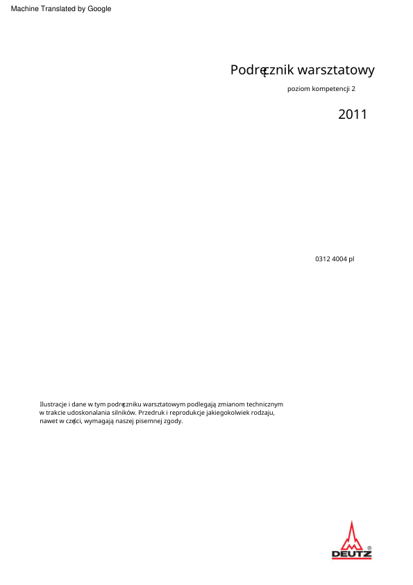 Deutz 2011 Engine Workshop Manual Rev 0312 4004 Polish
