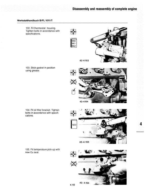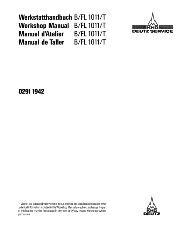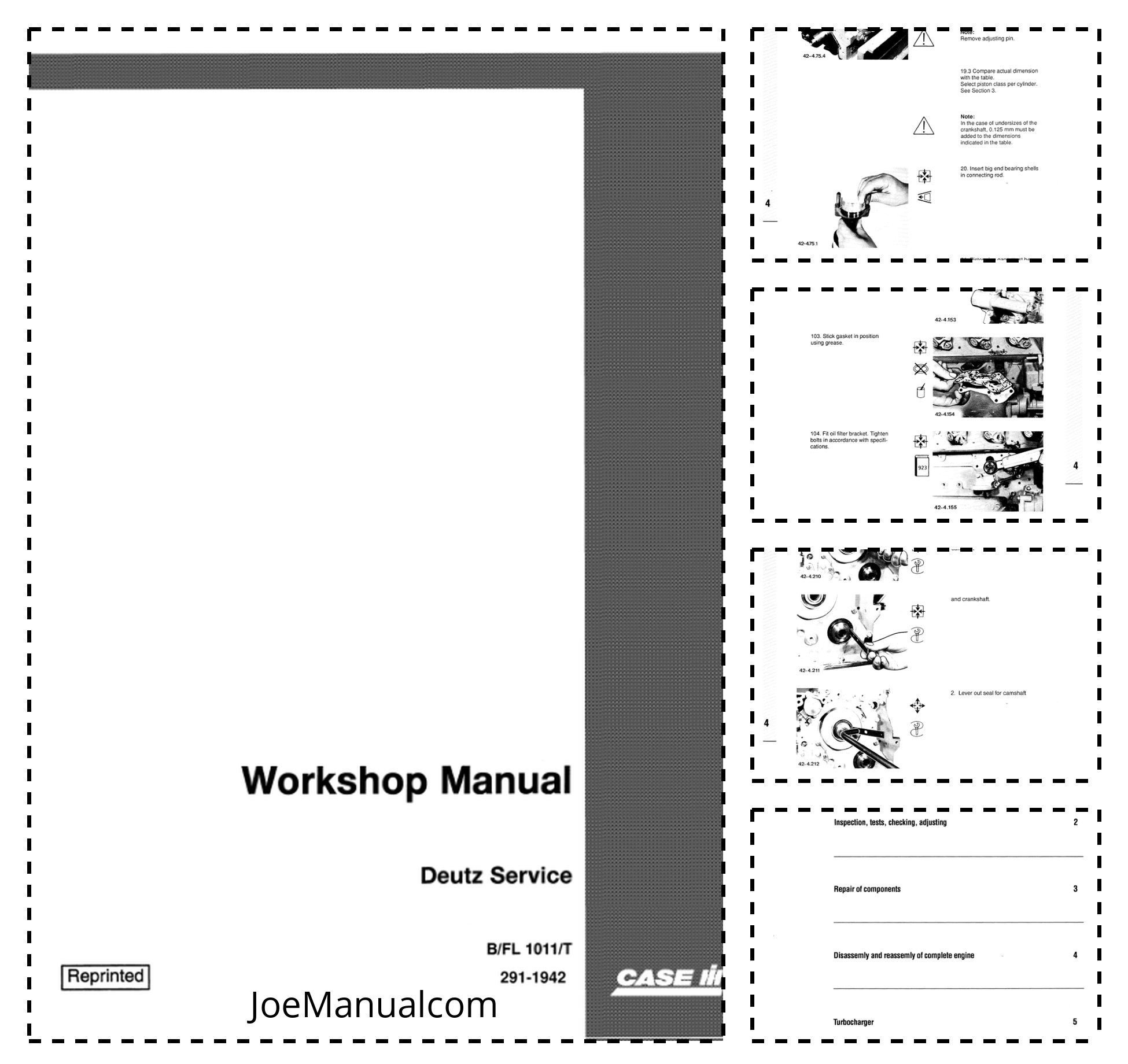 Deutz CASE B FL 1011 T Engine Workshop Manual is a comprehensive guide designed for maintenance, repair, and servicing of the Deutz B FL 1011 T engine. This manual provides detailed instructions, diagrams, and specifications to ensure accurate and efficient engine care. Whether you are a professional mechanic or a DIY enthusiast, this workshop manual is an essential resource for keeping your engine in top condition. It covers a wide range of topics, including disassembly and assembly procedures, troubleshooting guides, and maintenance schedules. With its clear and concise information, the manual helps users perform tasks with confidence and precision.