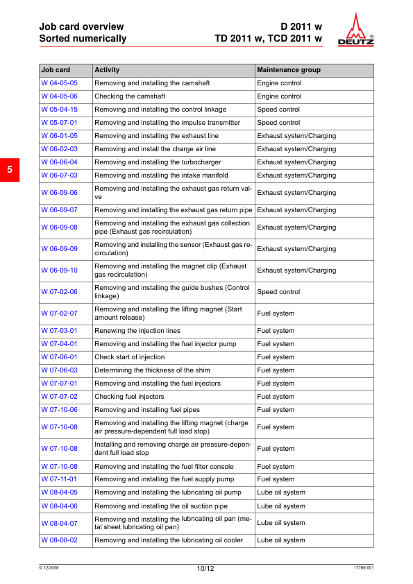Deutz D TD TCD 2011W Engine Workshop Manual
