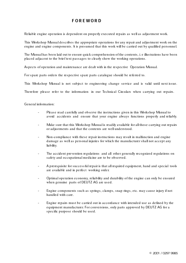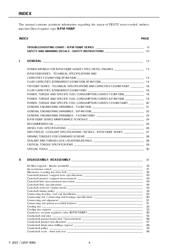 Deutz F2M1008 F3M1008 F4M1008 BF4M1008 Engines Workshop Manual