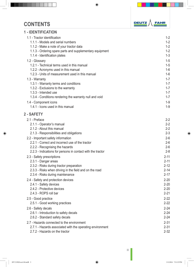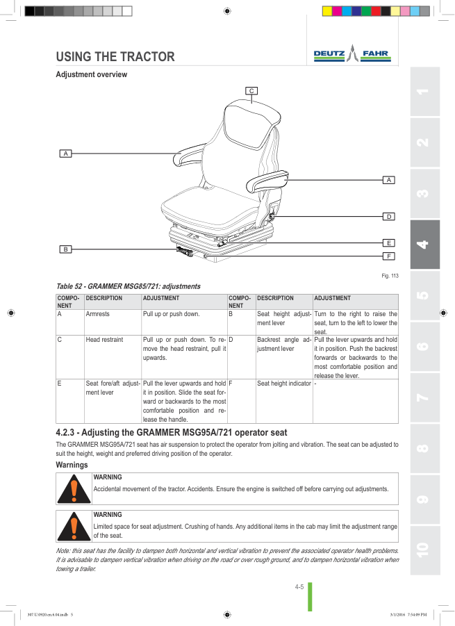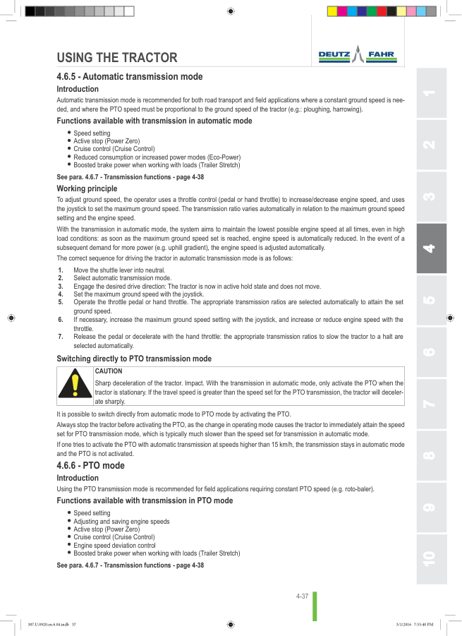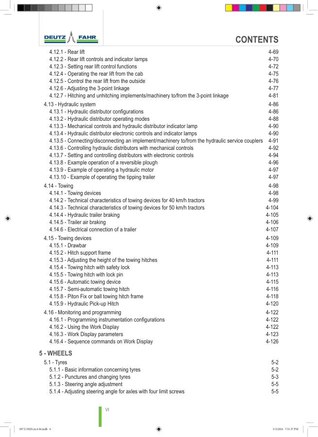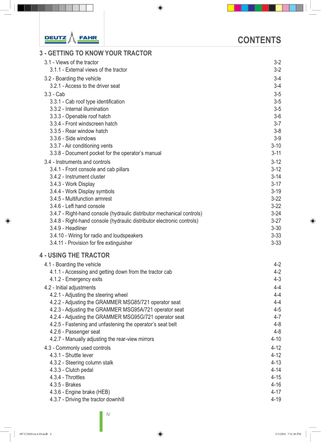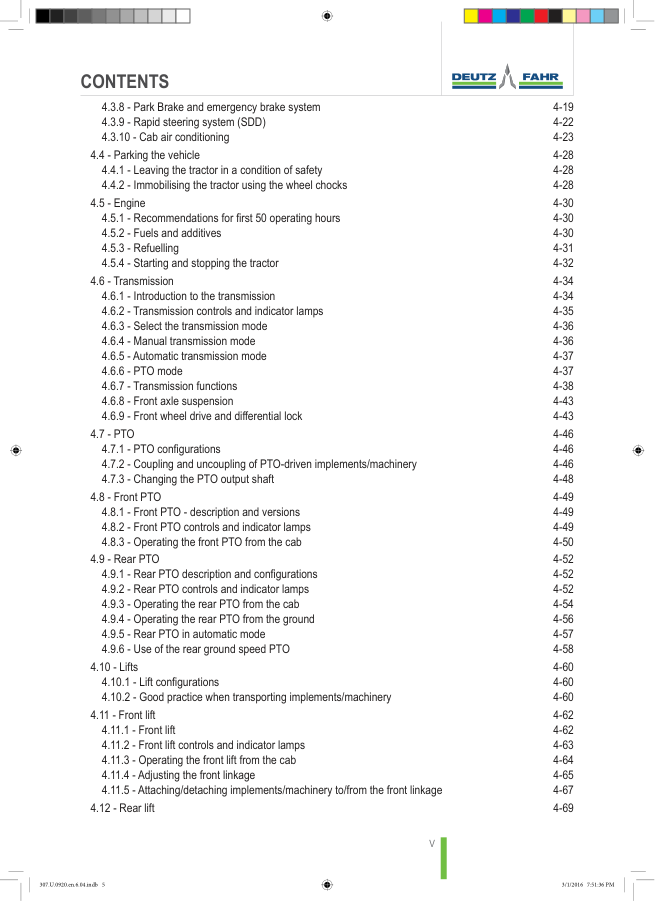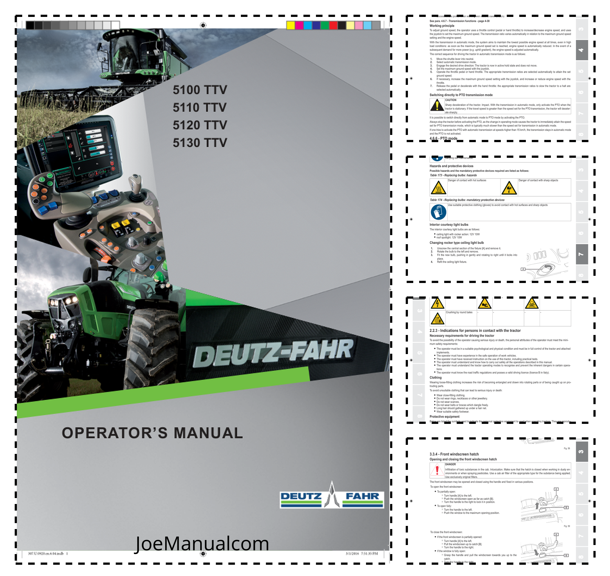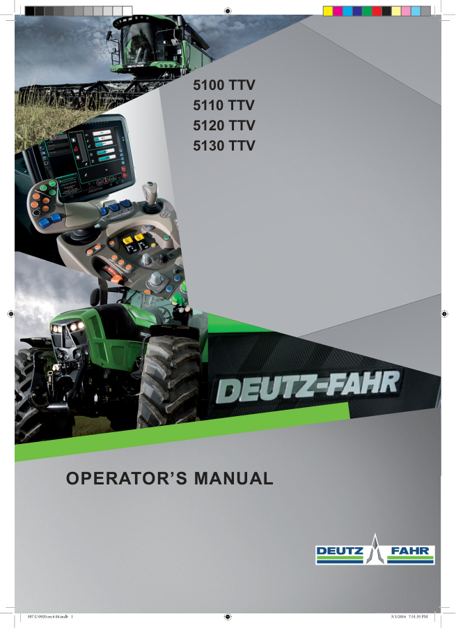 Deutz-Fahr 5100TTV 5110TTV 5120TTV 5130TTV Tractor Operators Manual