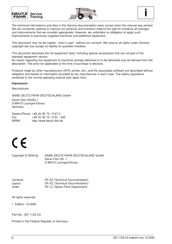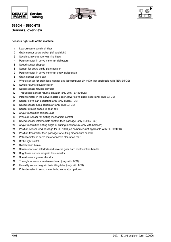Deutz Fahr 5650H 5660HTS 5670H HTS 5680H 5690HTS Combine Workshop Manual