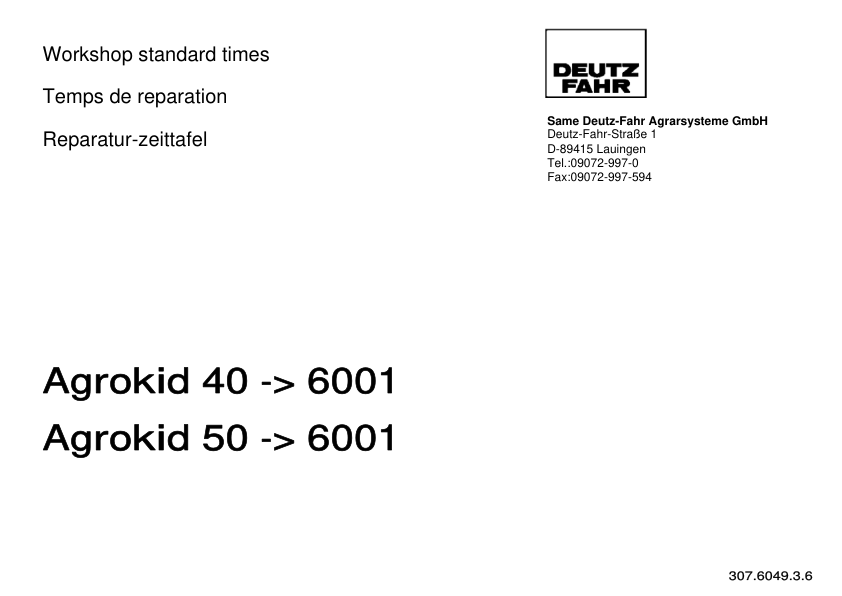 Deutz Fahr Agrokid 40 50 Tractors Parts Catalog