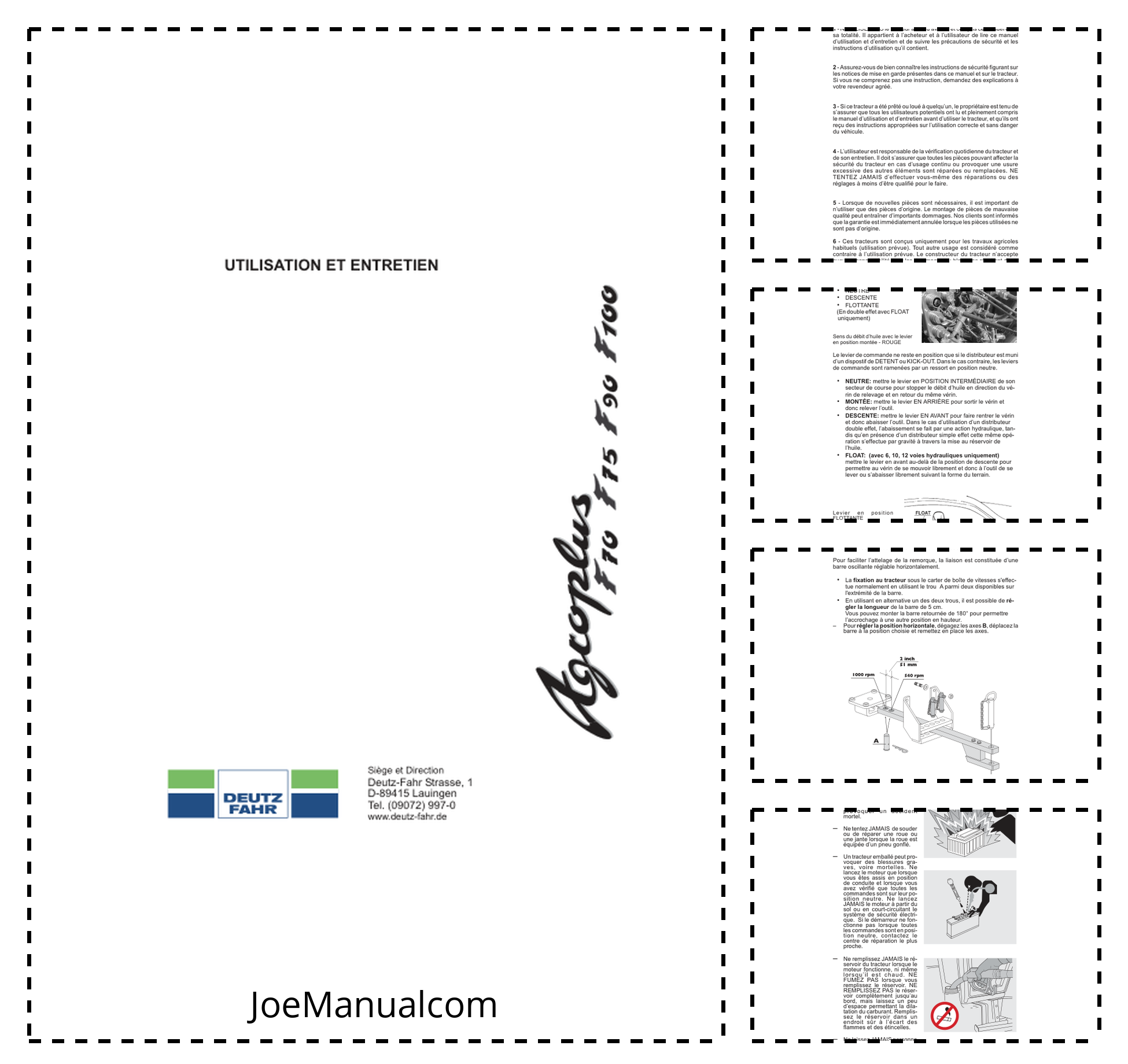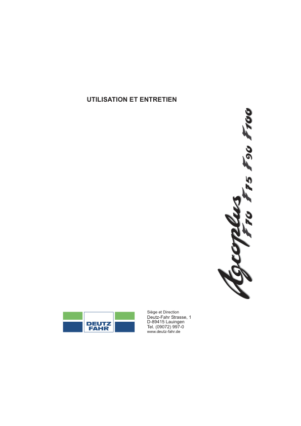Deutz Fahr Agroplus F70 F75 F90 F100 Tractor Operators Manual