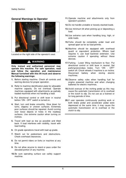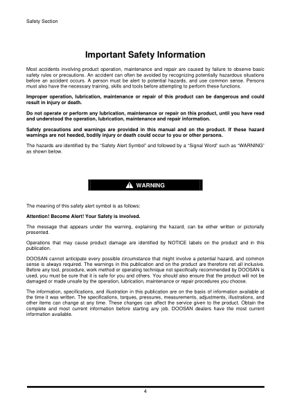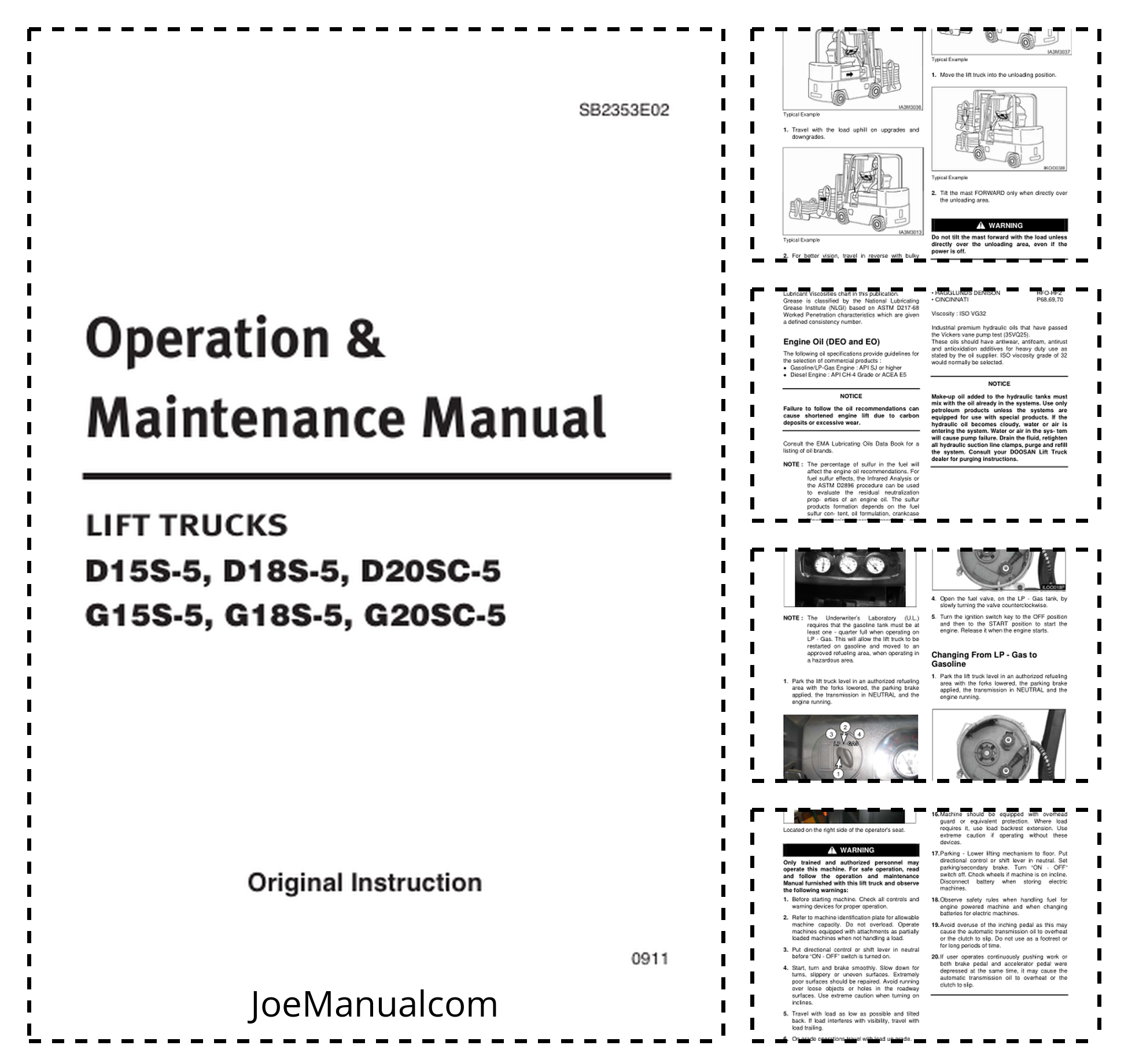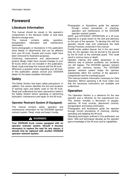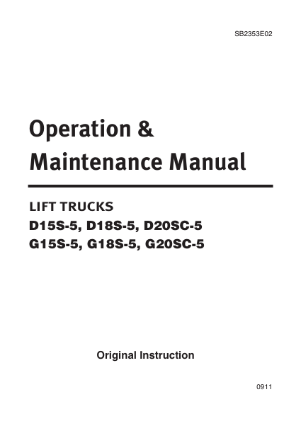 Doosan D15S-5 D18S-5 D20SC-5 G15S-5 G18S-5 G20SC-5 Lift Trucks Operation and Maintenance Manual