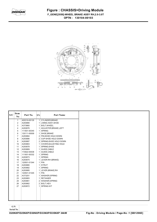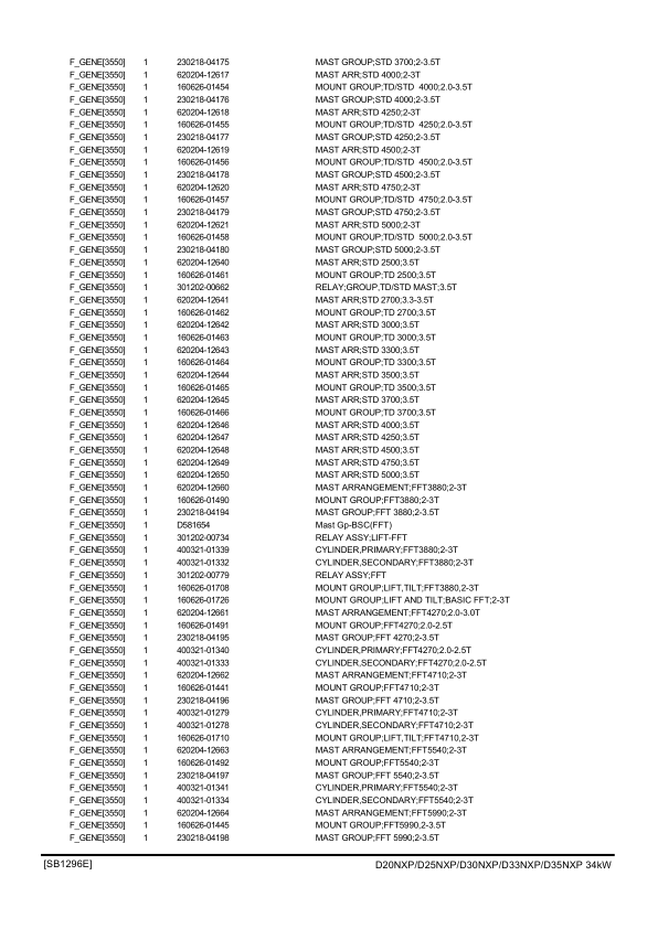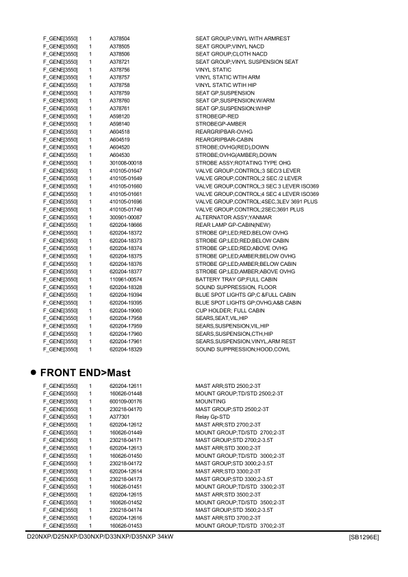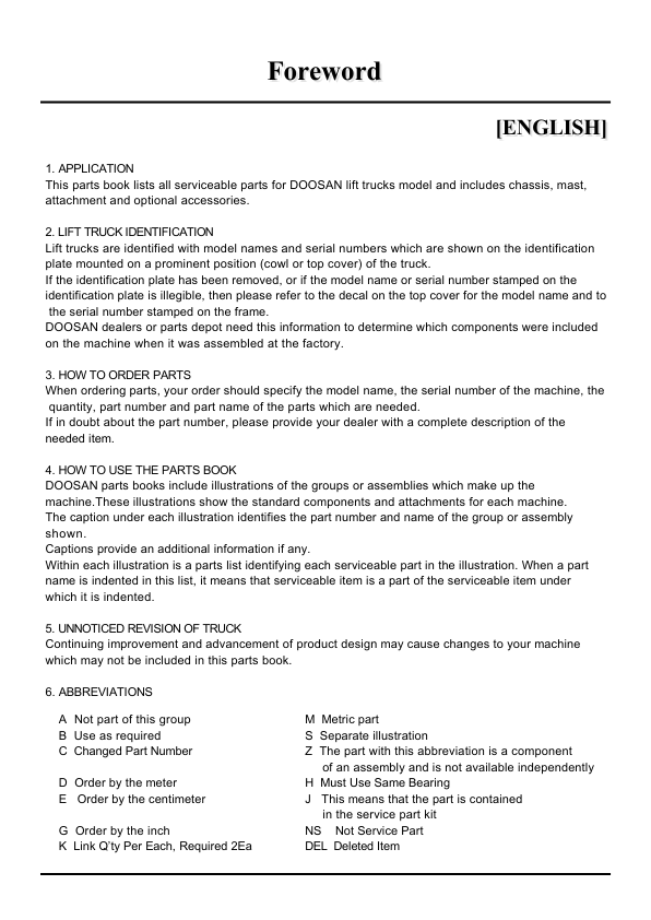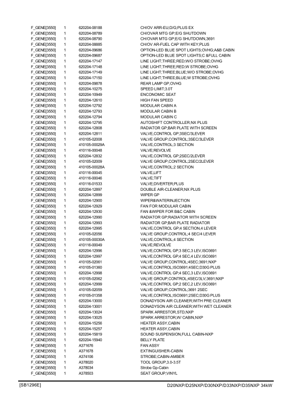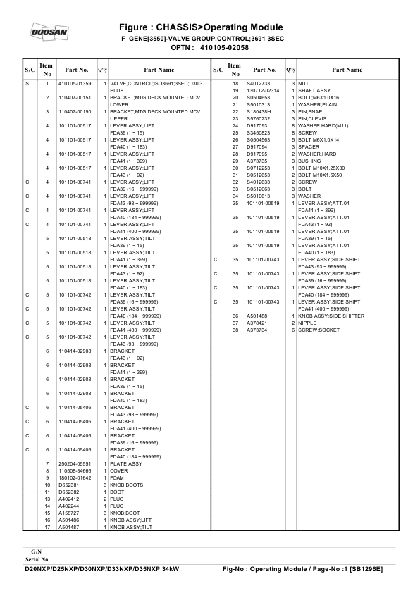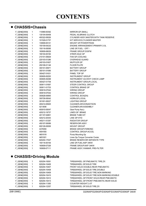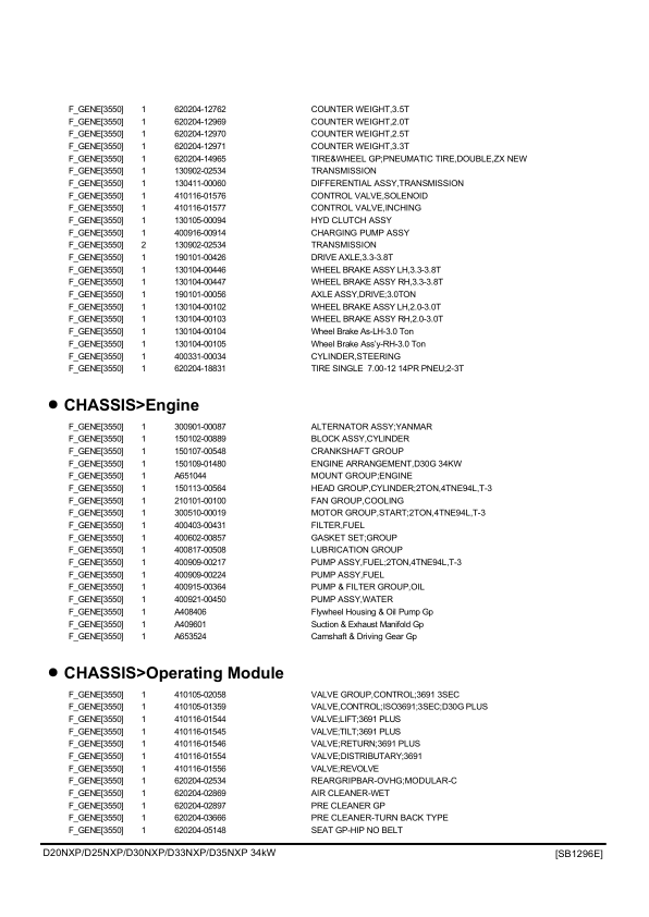 Doosan D20NXP D25NXP D30NXP D33NXP D35NXP 34kW Forklift Parts Catalog