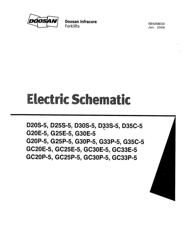 Doosan D20S-5 D25S-5 G20-5 G30P-5 GC25E-5 Forklift Electric Schematic Service Manual