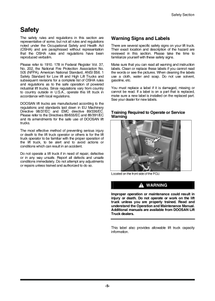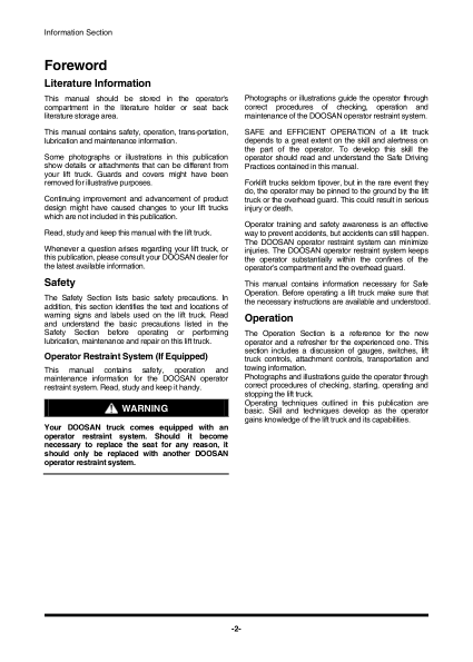 Doosan D35S to D55SC-5 G40SC-5 to G55SC-5 Lift Truck Operation and Maintenance Manual