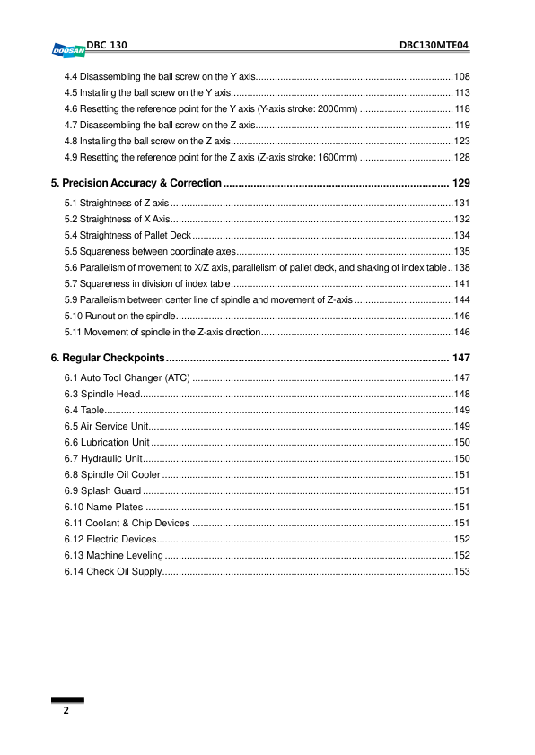 Doosan DBC130 CNC Machine Mechanical Repair Manual. This comprehensive manual provides detailed mechanical repair procedures, diagrams, and troubleshooting information specifically for the Doosan DBC130 CNC machine. It is an essential resource for technicians and maintenance personnel involved in the repair and upkeep of this equipment, ensuring accurate diagnostics and effective repair solutions.