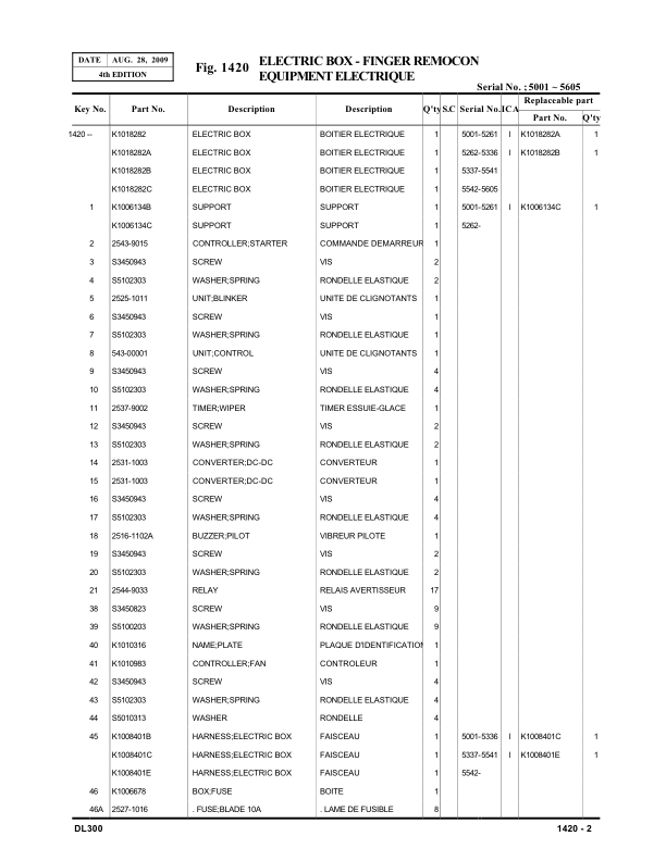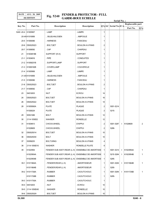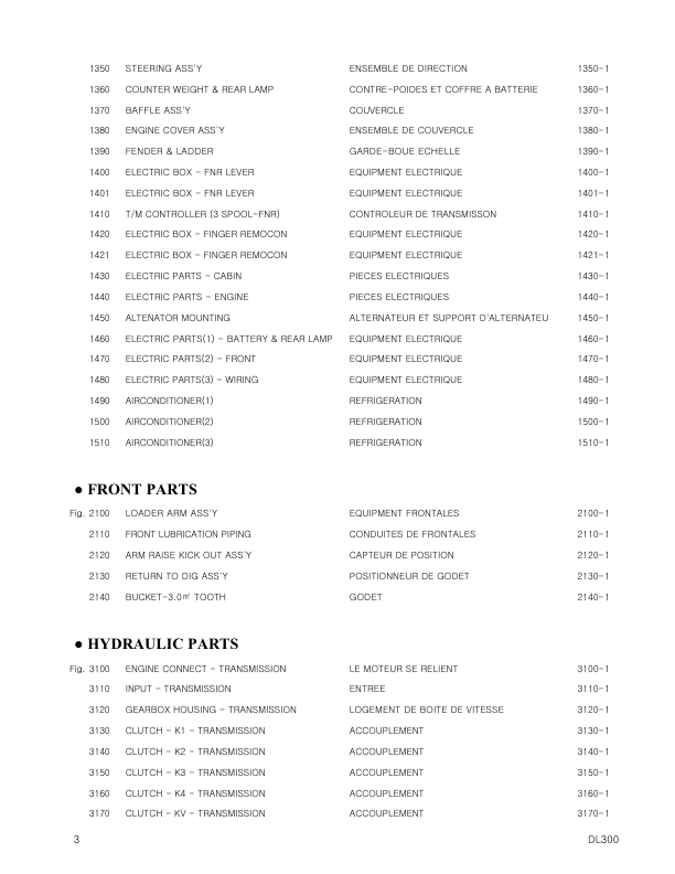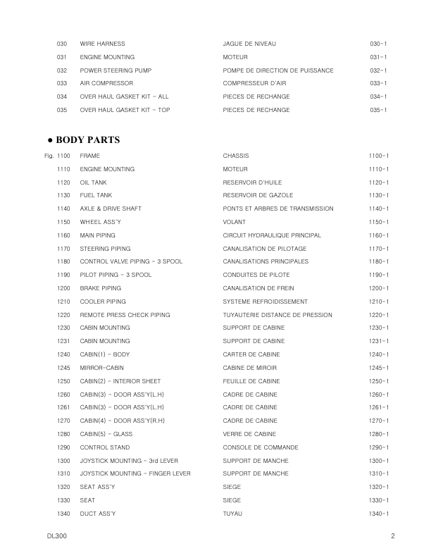 Doosan DL300 Excavator Parts Catalog 5001 and Up