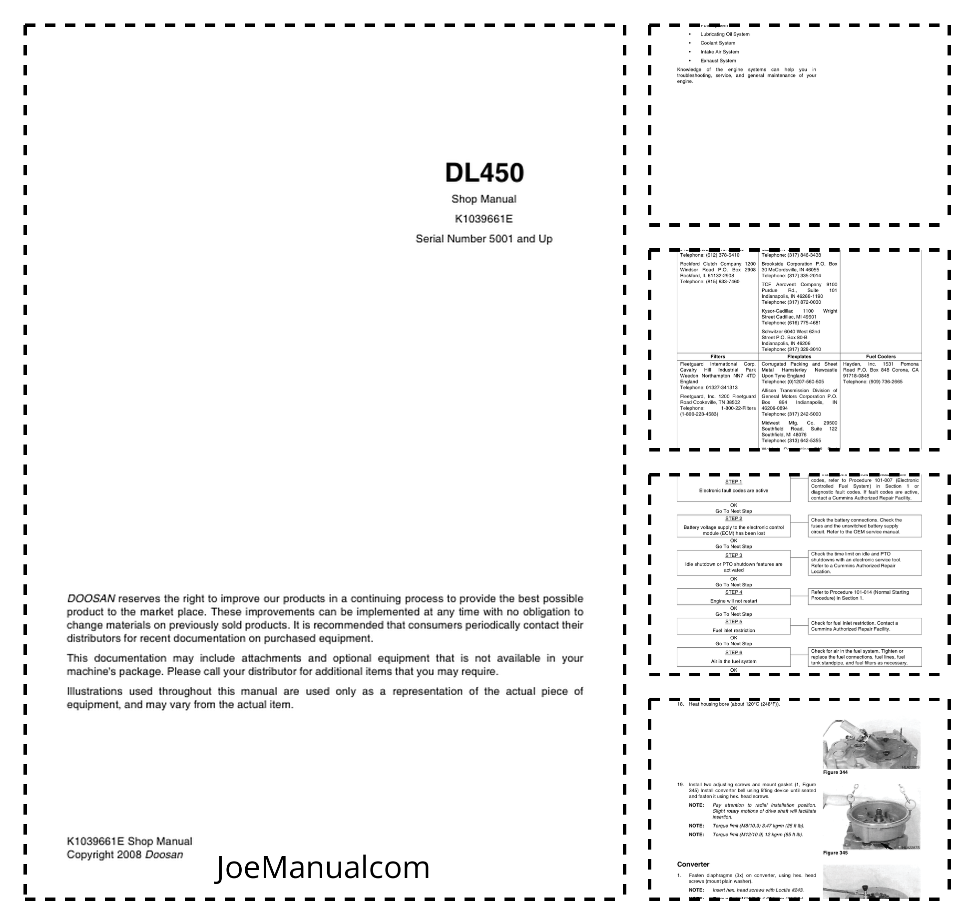 Doosan DL450 Wheel Loader Workshop Manual 5001 and Up. This comprehensive workshop manual provides detailed service, repair, and maintenance information for Doosan DL450 wheel loaders with serial numbers 5001 and up. It is an essential resource for technicians and mechanics to effectively diagnose and repair these machines, ensuring optimal performance and longevity.