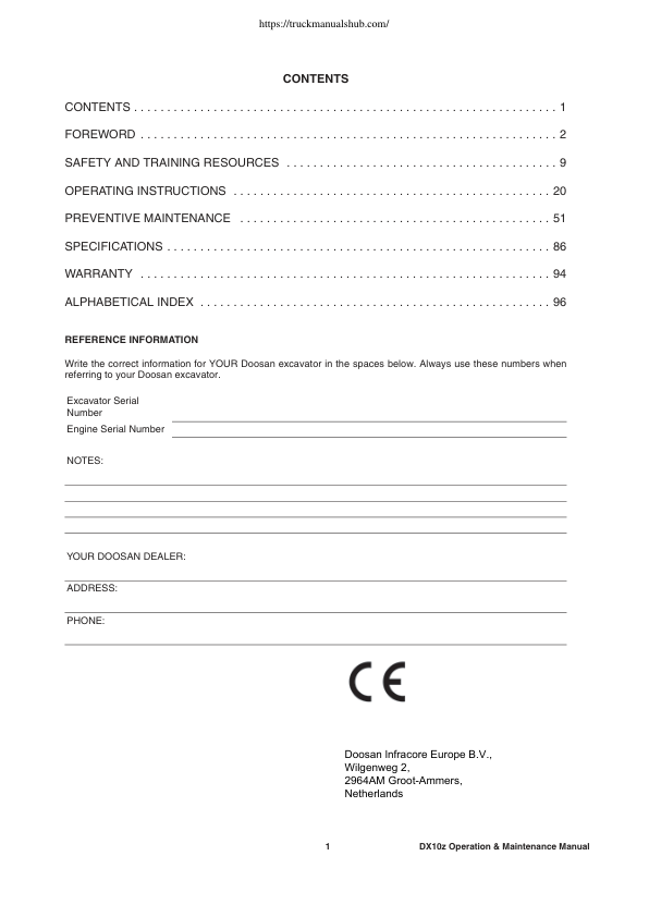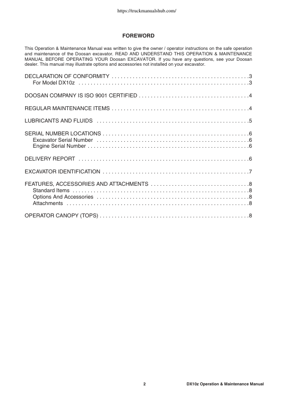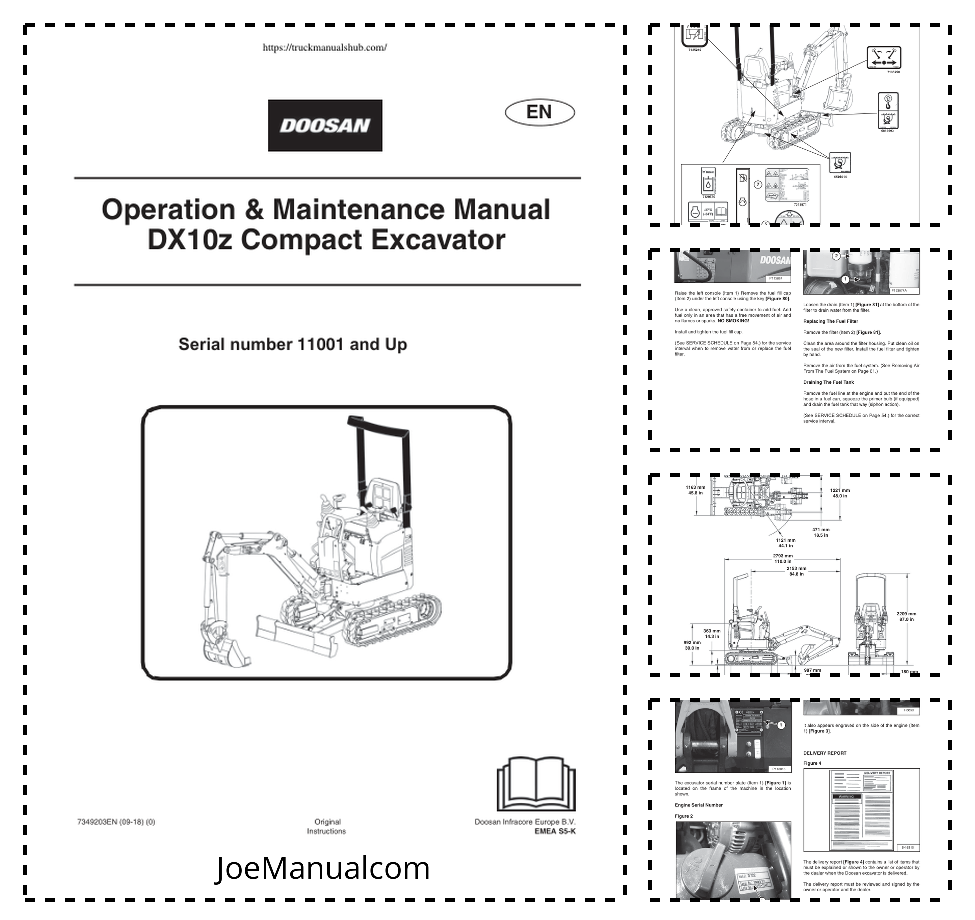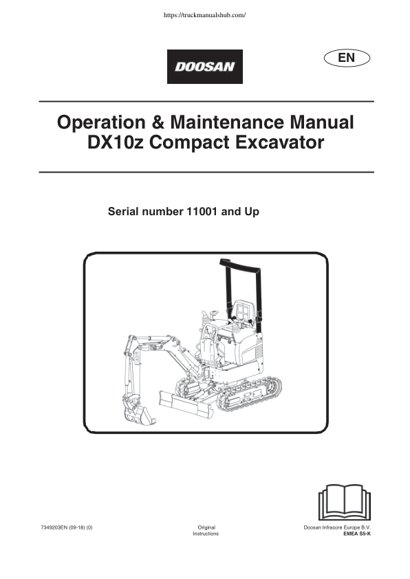 Doosan DX10 z Excavator Operation and Maintenance Manual 11001 and Up. This comprehensive manual provides essential guidance for the safe and effective operation, maintenance, and troubleshooting of Doosan DX10 z excavators with serial numbers 11001 and above. It includes detailed instructions, diagrams, and specifications to ensure optimal performance and longevity of your equipment.