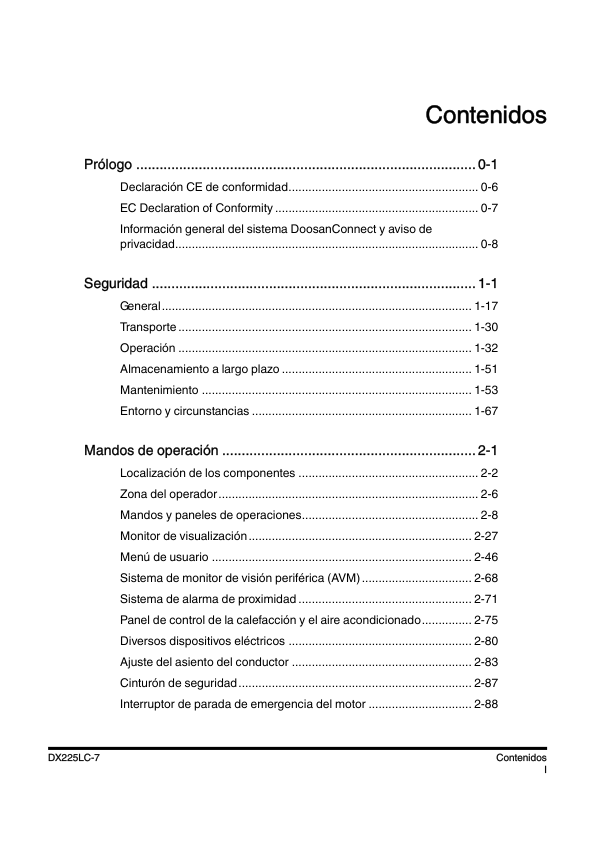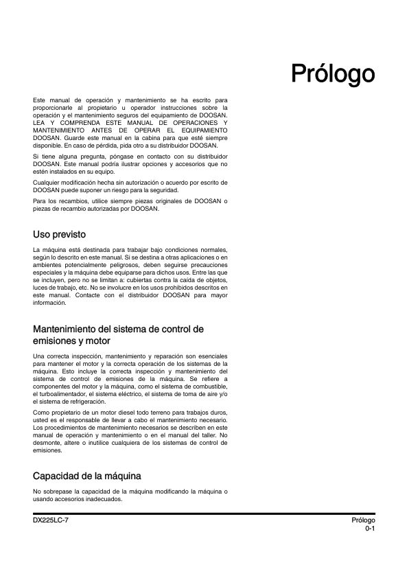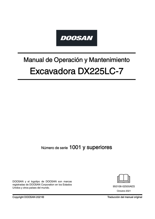Doosan DX225LC-7 Excavator Operation and Maintenance Manual 1001 and Up