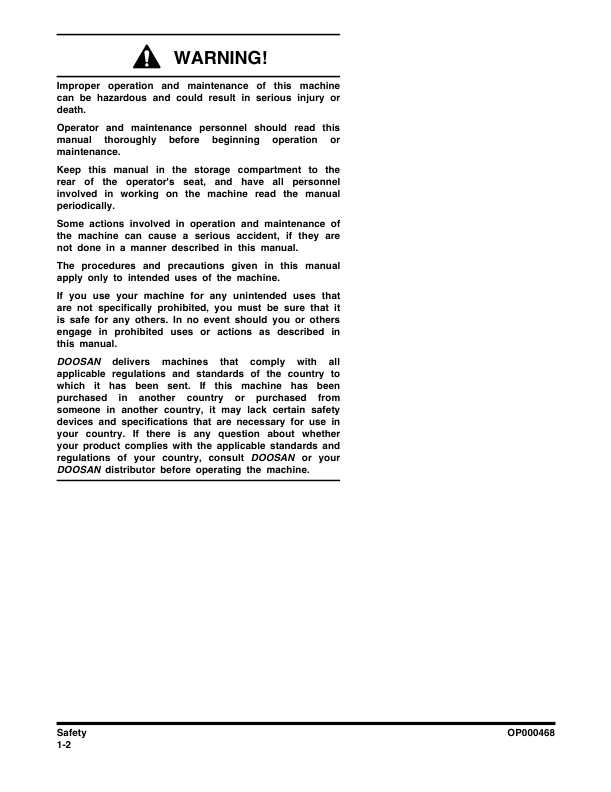 Doosan DX35 Z Mini Excavator Operation and Maintenance Manual 5001 and Up. This comprehensive manual provides essential information for the safe and efficient operation and maintenance of Doosan DX35 Z mini excavators with serial numbers 5001 and above. It includes detailed instructions, diagrams, and troubleshooting guides to help operators and technicians properly maintain and repair their equipment.