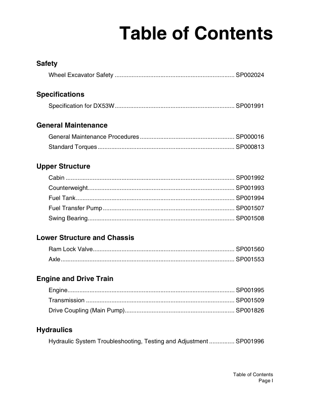Doosan DX53W Wheeled Excavator Service Manual 5001 and Up