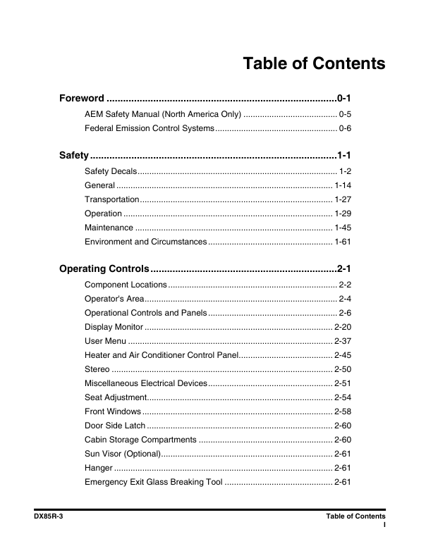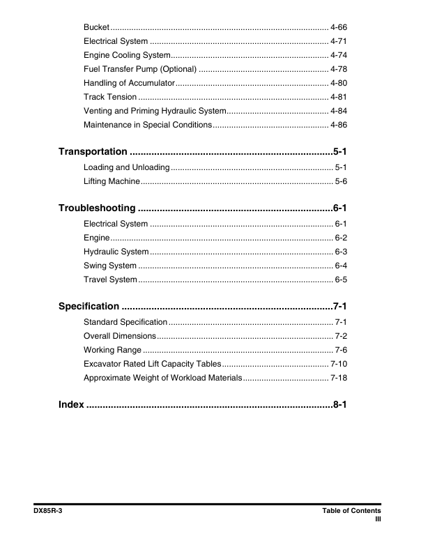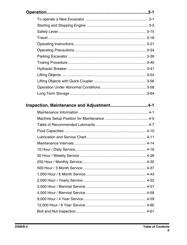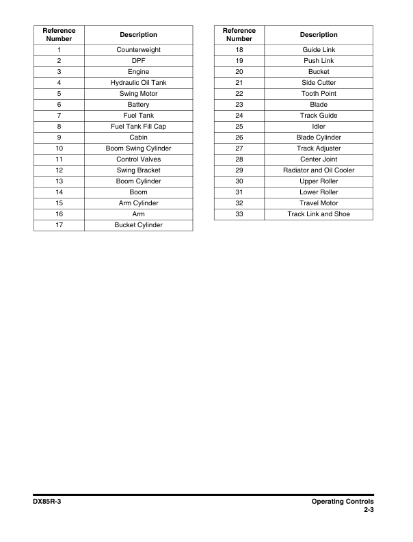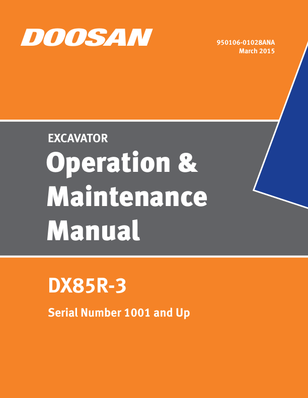 Doosan DX85R-3 Excavator Operation and Maintenance Manual 1001 and Up