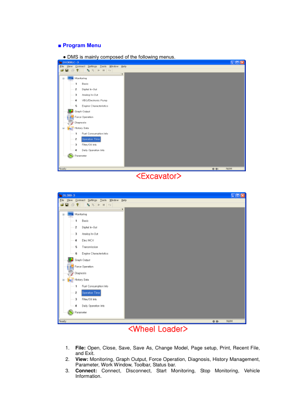 Doosan Excavator Wheel Loader Monitoring Program User Guide