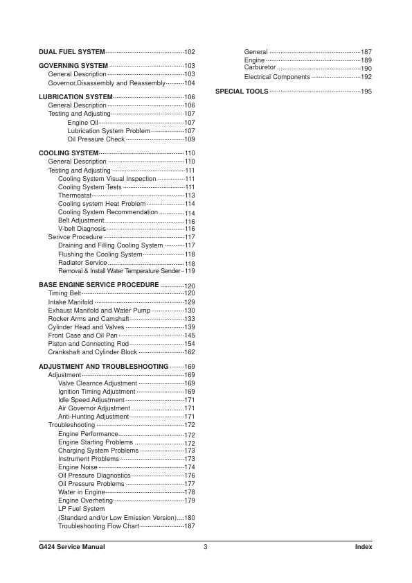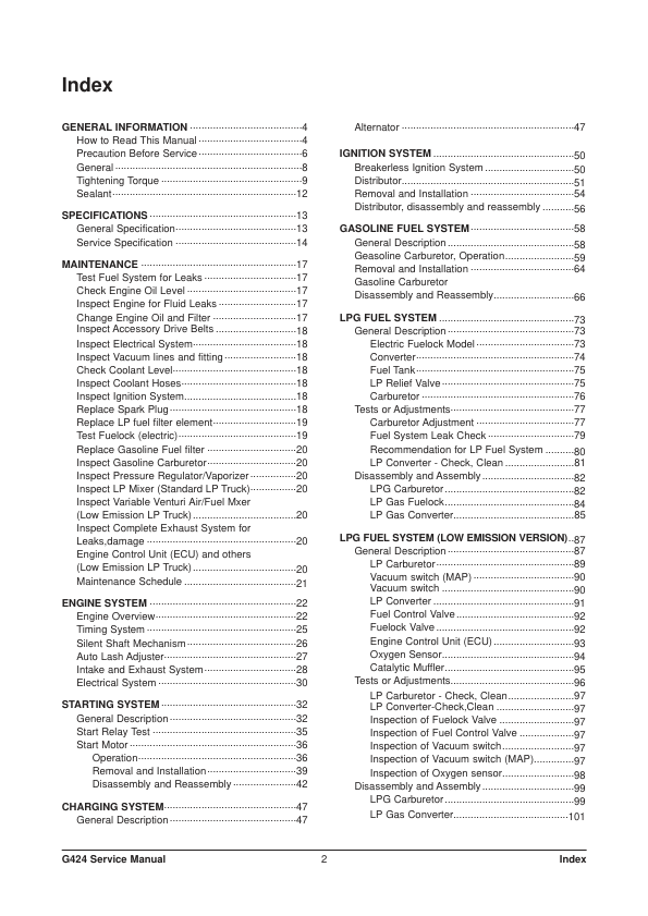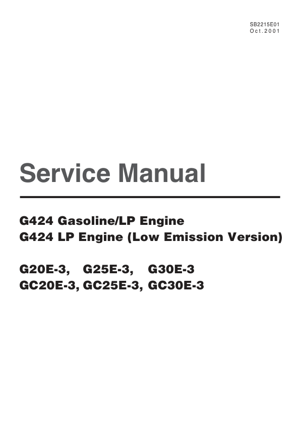 Doosan G424 Gasoline LPG Engine Service Manual. This manual provides comprehensive technical information and detailed instructions for the service, repair, and maintenance of the Doosan G424 Gasoline LPG engine. It is an essential resource for technicians and mechanics working on these engines, offering guidance on troubleshooting, component replacement, and engine overhaul procedures.