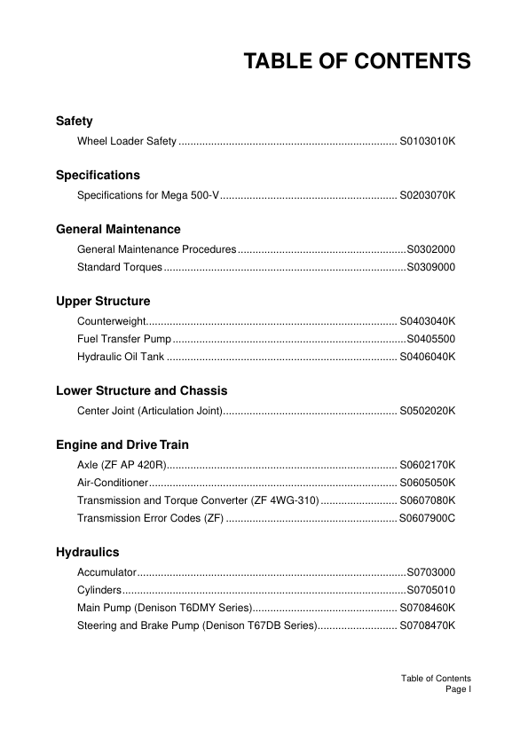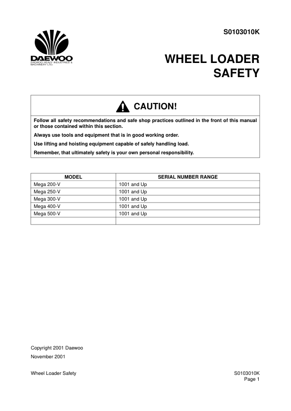 Doosan M500-V Wheel Loader Workshop Manual 1001 and Up