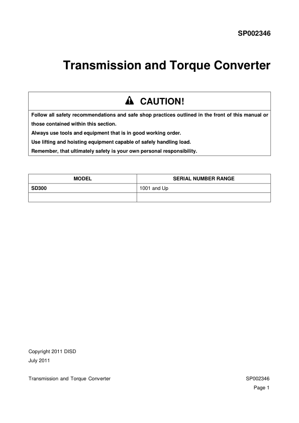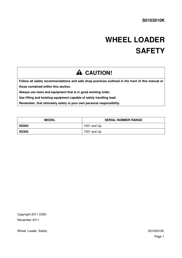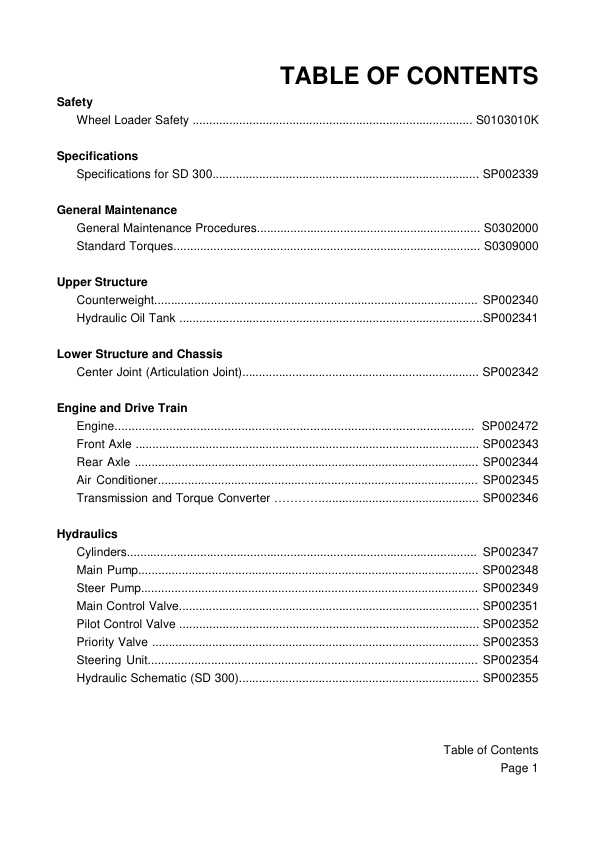 Doosan SD300 Wheel Loader Workshop Manual 1001 and Up