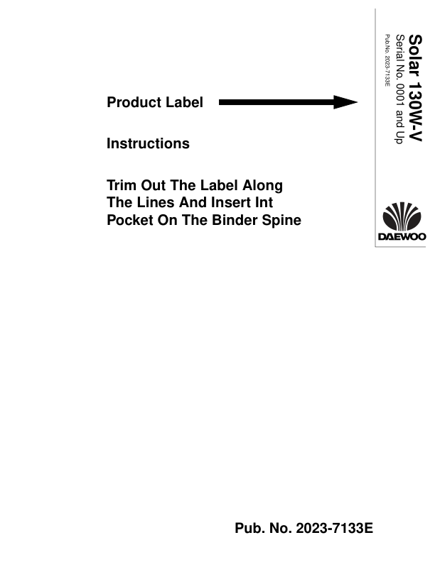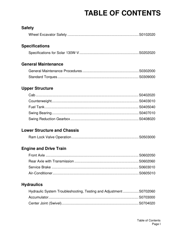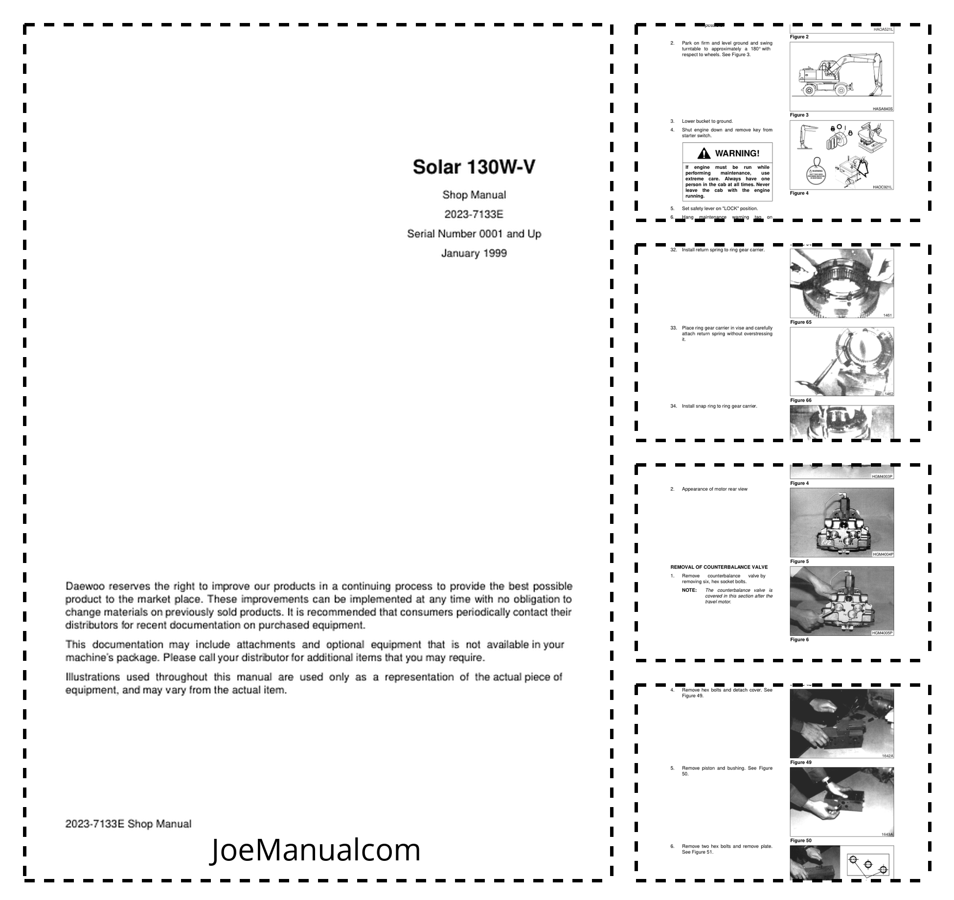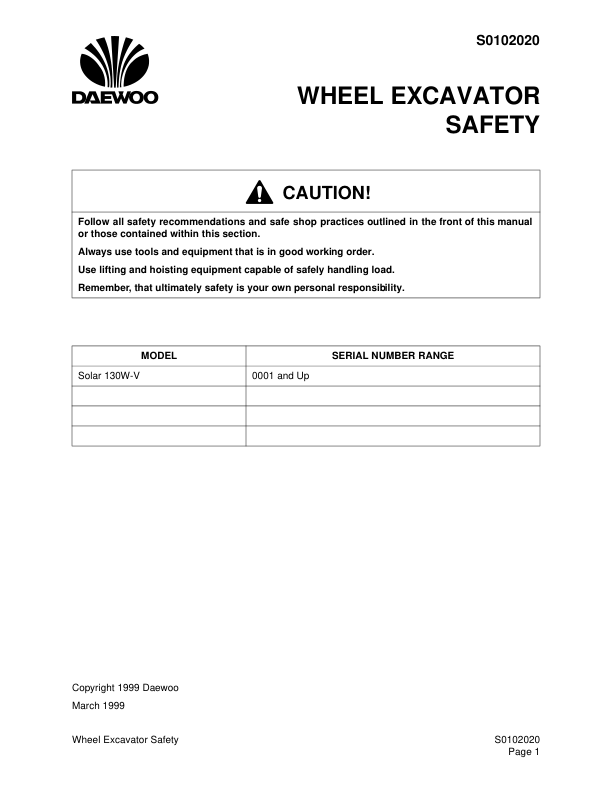 Doosan Solar 130W-V Excavator Workshop Manual SN 0001 and UP