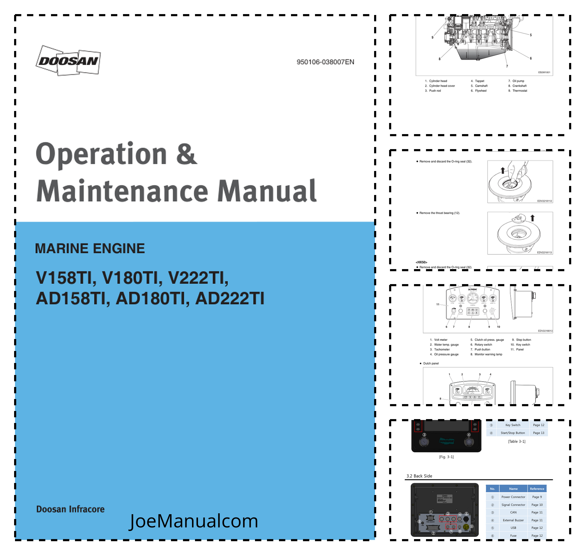 Doosan V158 T V180 TI V222 TI AD158 TI AD180 TI AD222 TI Engine Operation and Maintenance Manual provides comprehensive guidance for the safe and effective operation, maintenance, and repair of these specific Doosan engine models. This manual contains detailed instructions, diagrams, and troubleshooting information necessary for maintaining optimal engine performance and longevity.
