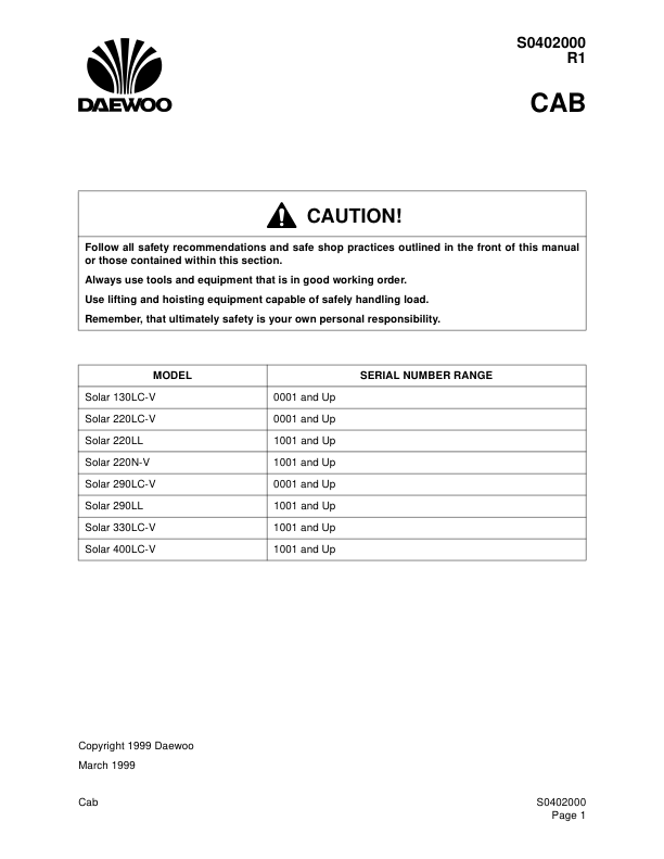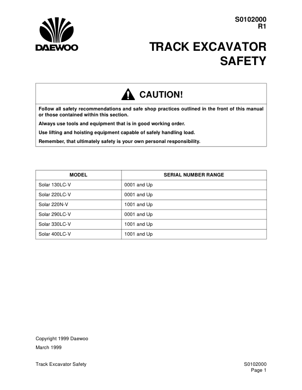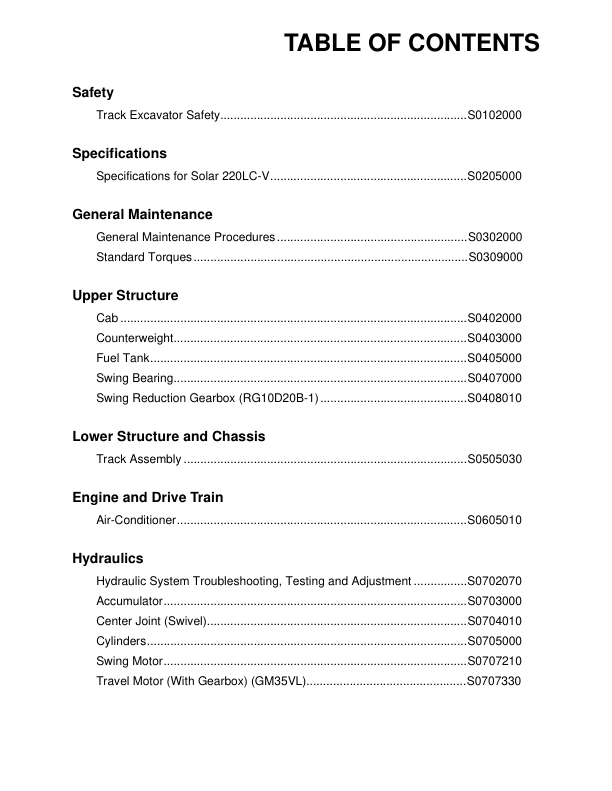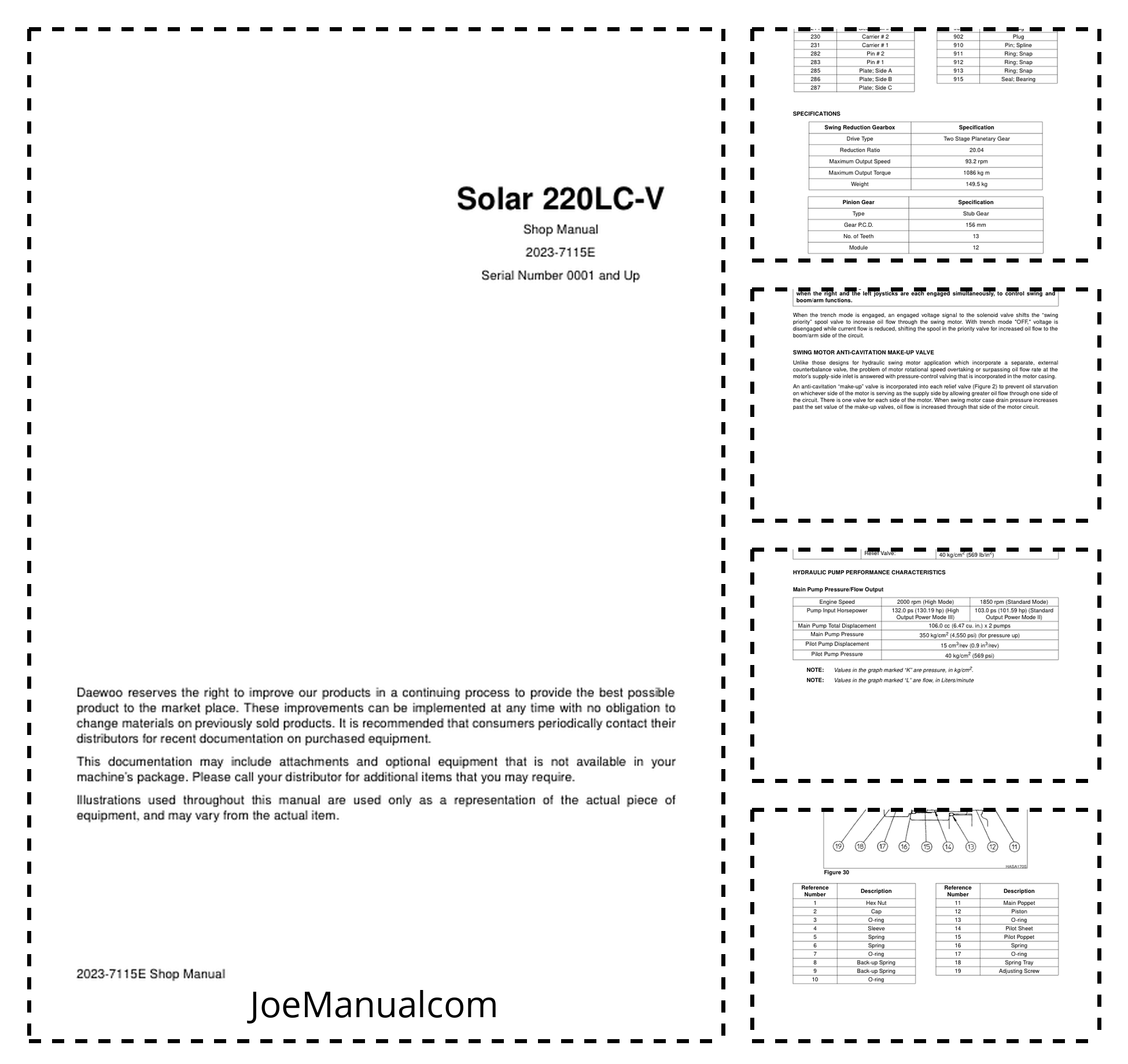 Dosan Solar 220LC-V Excavator Workshop Manual SN 0001 and UP