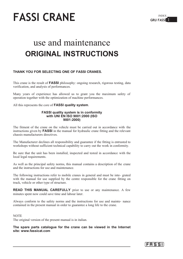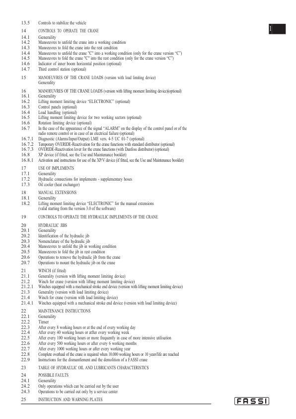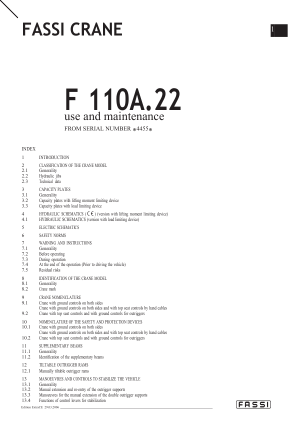 Fassi F110A22 Crane Operation and Maintenance Manual