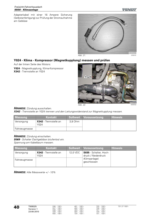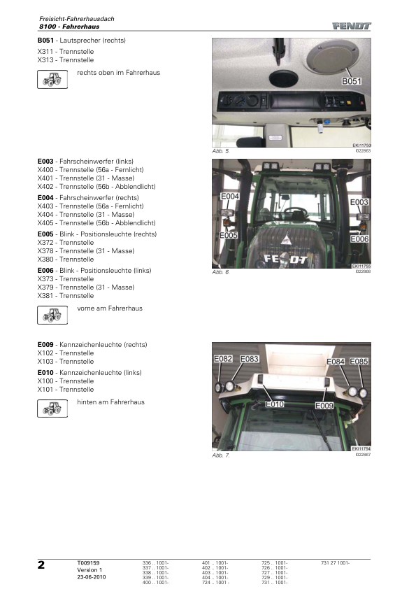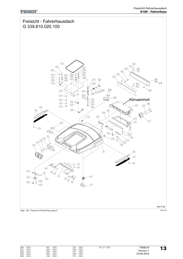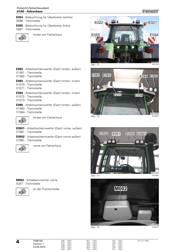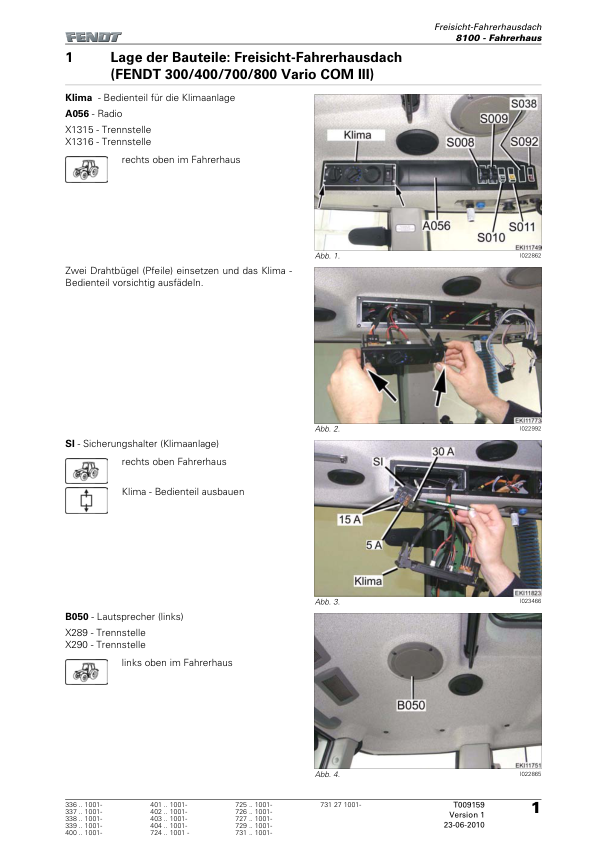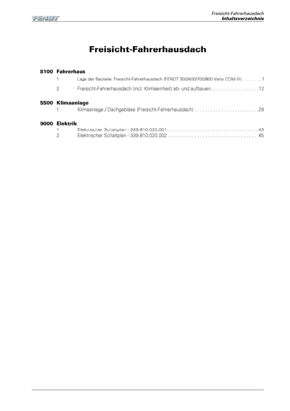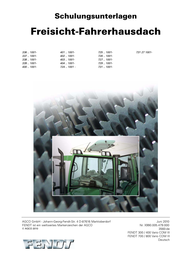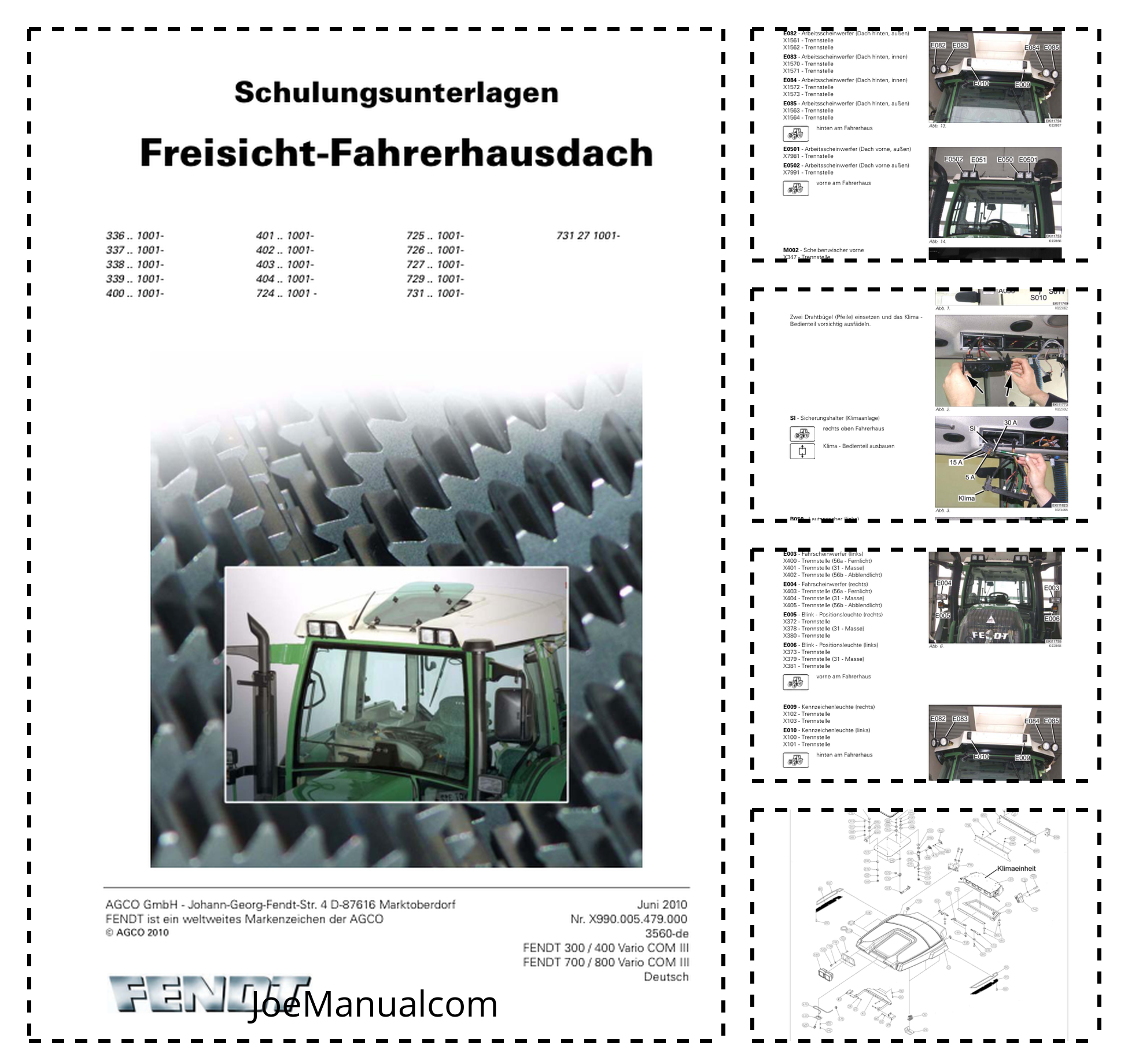 Fendt 300 400 700 800 Vario Tractors Freisicht Cab Roof Manual 06-2010