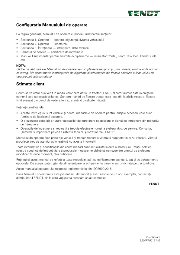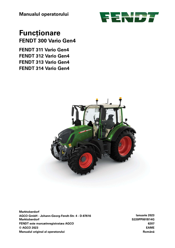 Fendt 311 312 313 314 Vario Gen4 Tractors Operators Manual RO