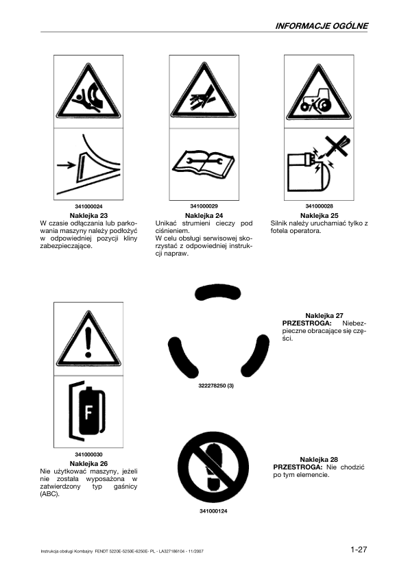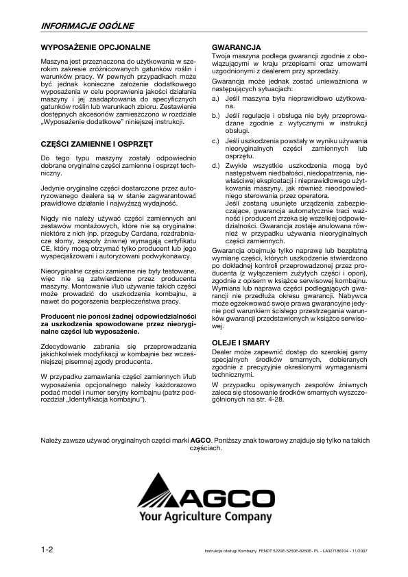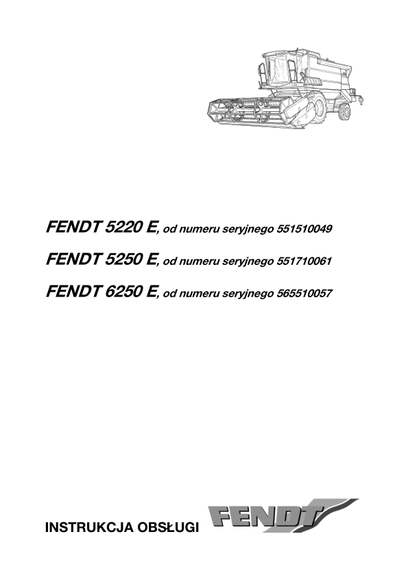 Fendt 5220E 5250E 6250E Combine Harvesters Operators Manual PL