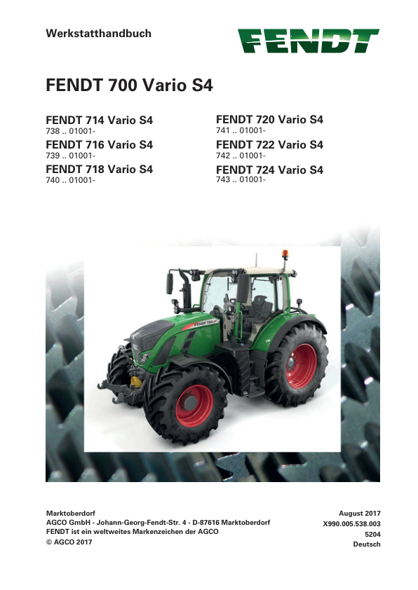 FENDT 700 714 716 718 7120 722 724 Vario S4 Tractor Workshop Manual DE
