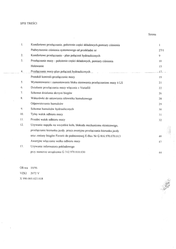 Fendt 816 826 Favorit Tractor Operation Manual PL 1996