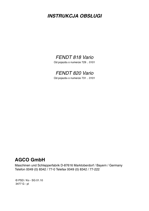 Fendt 818 820 Vario Tractor Operators Manual PL