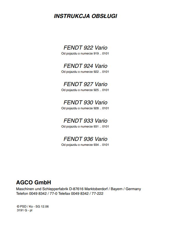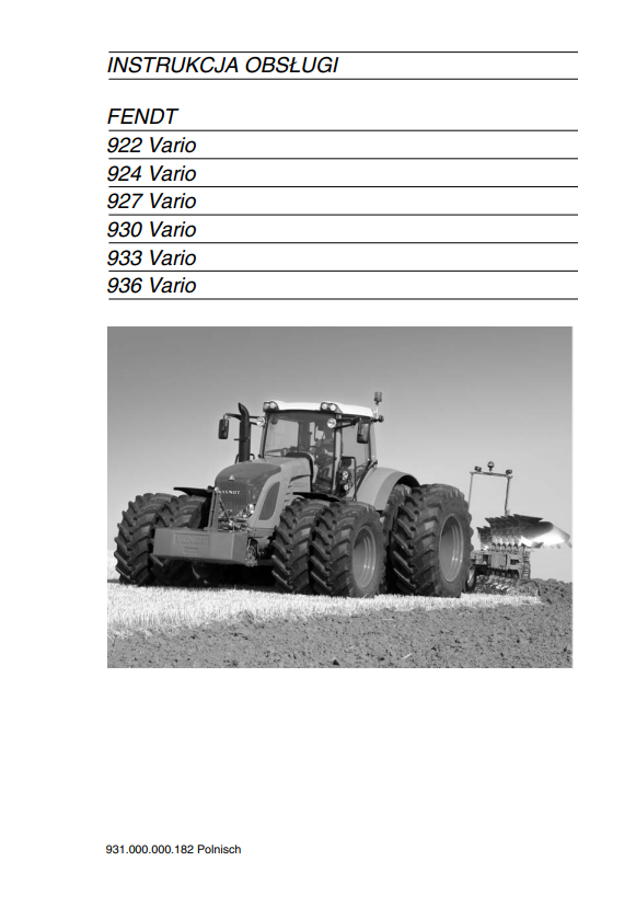 Fendt 922 924 927 930 933 936 Vario Instrukcja Operation and Maintenance Manual Electric Diagram